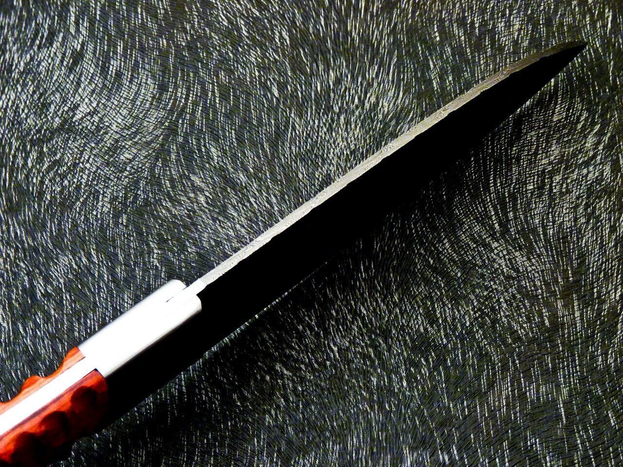 The 9-inch Heritage Forge handmade Damascus chef knife is a masterpiece of craftsmanship and performance. Measuring 9 inches overall, this elegant knife features a 4.25-inch blade forged from 512 layers of 1095 and 15N20 high carbon steel, creating a stunning Damascus pattern that flows beautifully to the edge. Expertly heat-treated to a Rockwell hardness of 50–54 at the edge and 42–45 along the spine, the blade ensures exceptional sharpness, edge retention, and durability. At 4 mm thick with finely hand-ground edges and a subtle false edge on top, it delivers precise and effortless cutting. The 4.75-inch handle is crafted from premium hardwood scales, secured with brass pins and strong epoxy for lifetime durability, and finished with a handmade steel bolster for strength and balance. Designed for chefs, home cooks, and collectors, this Heritage Forge chef knife combines beauty, reliability, and unmatched functionality.
