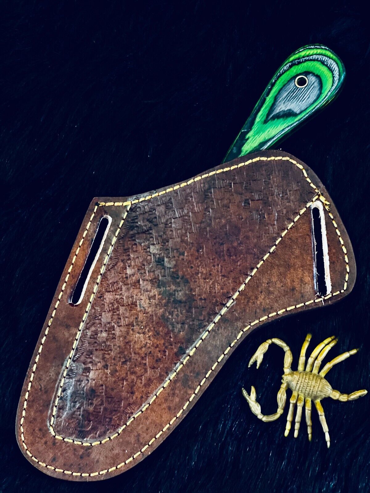 Every detail is handcrafted, ensuring that no two knives are the same. The razor-sharp edge, honed at a 20° angle, makes this knife as functional as it is visually stunning. A premium hand-stitched leather sheath is included to protect the blade and allow easy carry in the field.