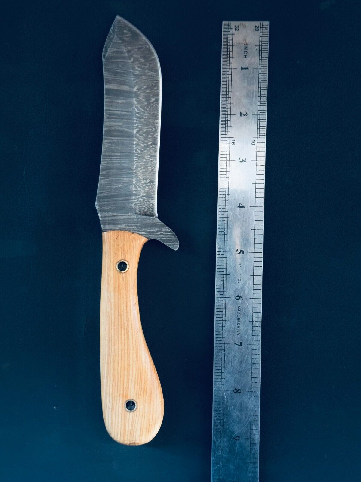 The blade is forged from high quality Damascus steel featuring a striking Fire Storm pattern. With a hardness of 58–60 HRC, this Bull Knife offers excellent edge retention and long lasting sharpness.As a precision skinner and field blade, it performs efficiently among Bull Cutter Knives used for hunting tasks.