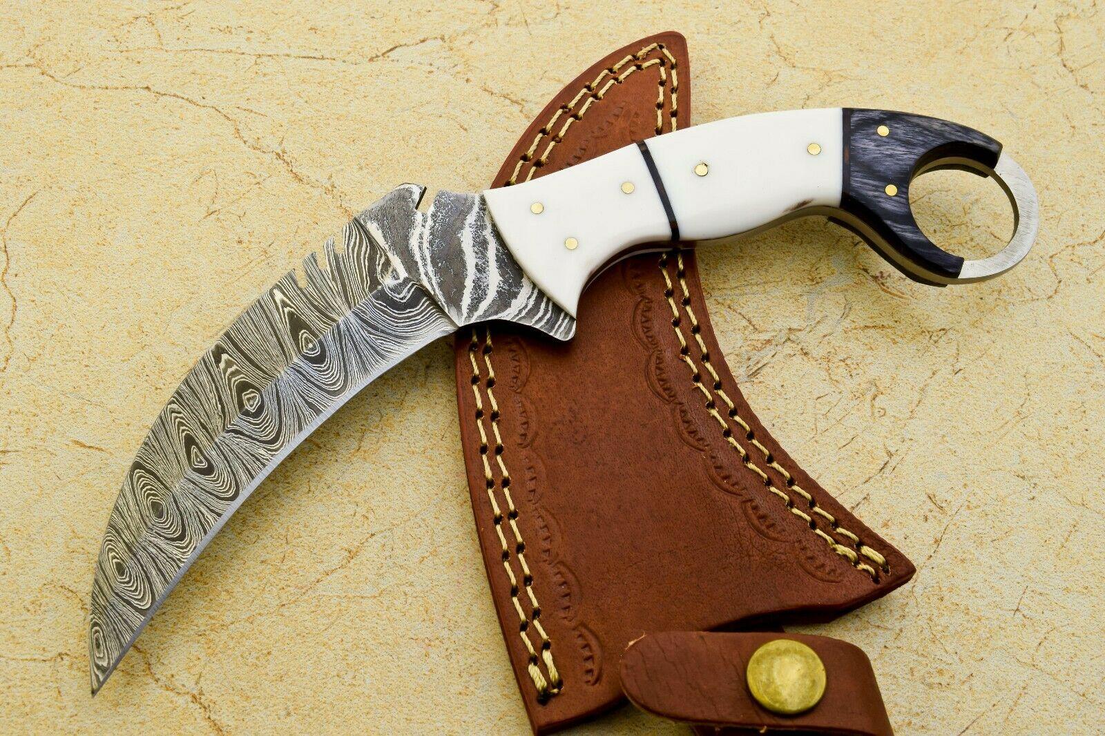 - Durable karambit damascus steel blade with balanced hardness