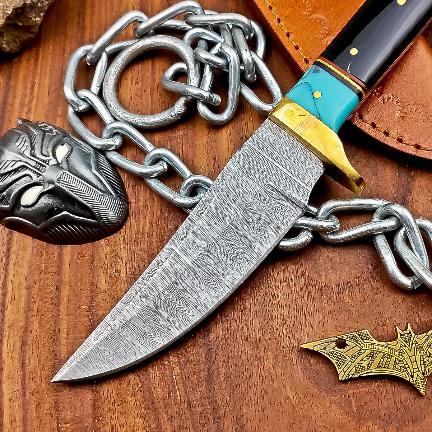 9" Heritage Forge Handmade Damascus Hunting Knife – Resin Handle with Leather Sheath