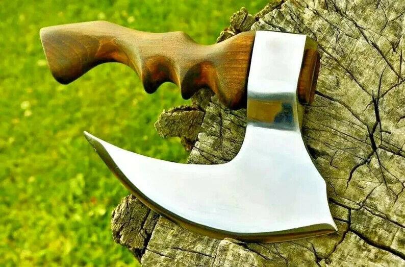 Discover the perfect balance of tradition and functionality with this handmade Viking axe. Expertly crafted with a stainless steel blade, this compact yet durable axe is designed for precision cutting, making it ideal as a meat cutting axe, small hatchet, or unique kitchen and outdoor tool. With a total weight of 730g and an overall length of 9 inches, it is easy to handle while maintaining excellent cutting power. The 7.5-inch cutting edge delivers clean and efficient cuts, while the blade’s HRC hardness of 58–60 ensures strength and long-lasting sharpness.