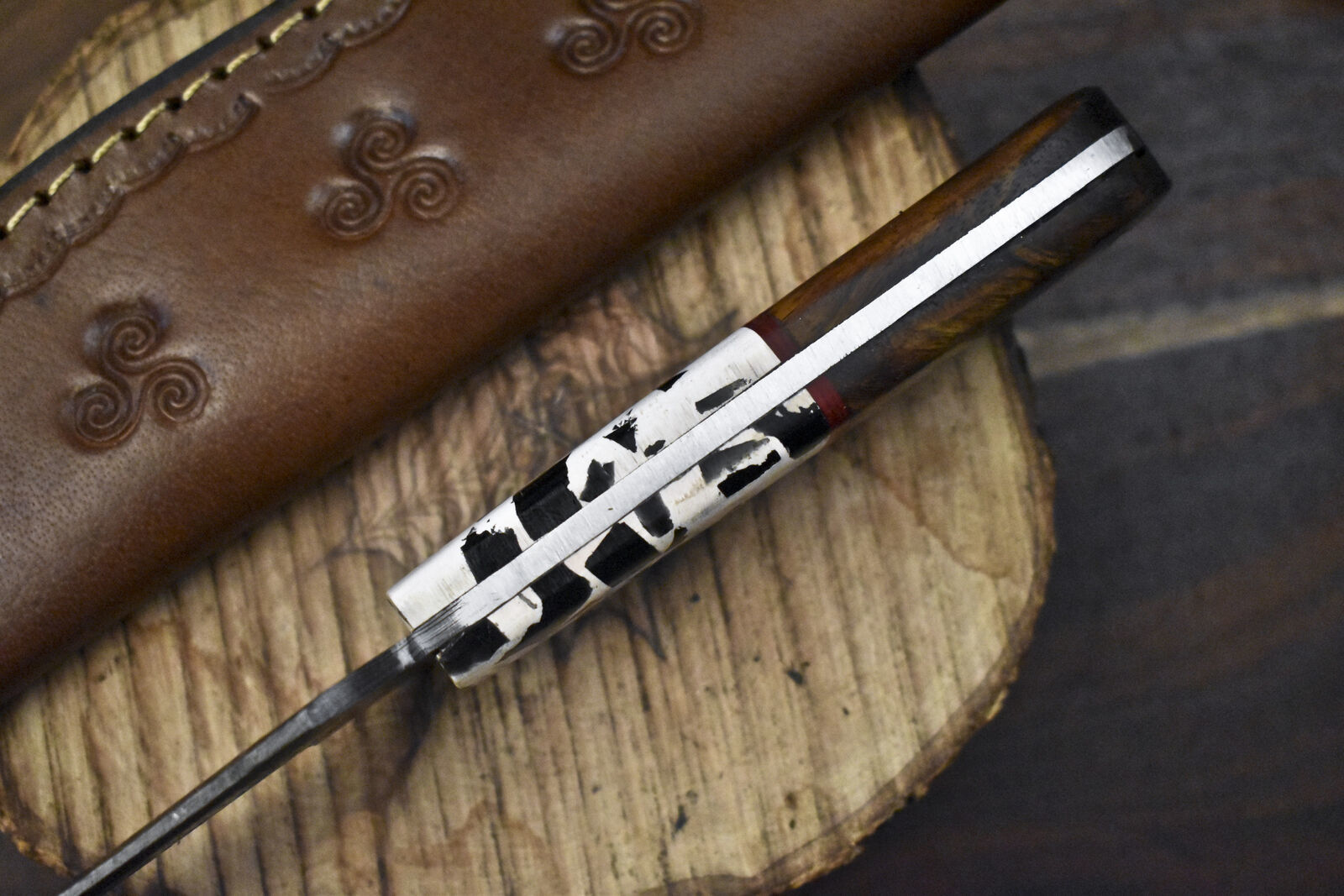 Designed with a 4.5-inch mixed material handle, this handmade skinner Damascus knife combines both beauty and function, providing a secure grip and excellent control even in challenging environments. The knife is oil-tempered to 58–60 HRC, ensuring a razor-sharp edge that withstands repeated use in the field.