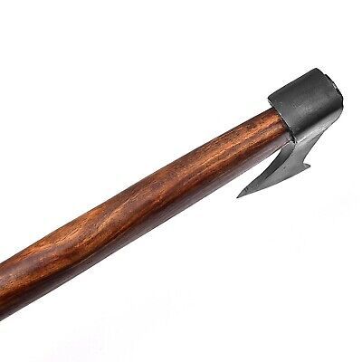 Step back into history with this Renaissance Antiqued Viking Francisca Axe, a legendary weapon once wielded by Norse warriors for both throwing and close-quarters combat. Known for its graceful yet deadly design, the Francisca’s up-swept point and down-turned edge were powerful enough to penetrate chain mail, making it a feared weapon on the battlefield.This authentic reproduction features a forged high carbon steel blade, heat tempered for durability and functionality. The axe head measures 6.75 inches in length, with a 3.5-inch cutting edge nearly 3/5" thick, ensuring both strength and historical accuracy. The hardwood shaft, measuring 18.5 inches, is finished with a polished surface and swollen end for secure head retention, making it perfect for reenactments, costume displays, or collection pieces.