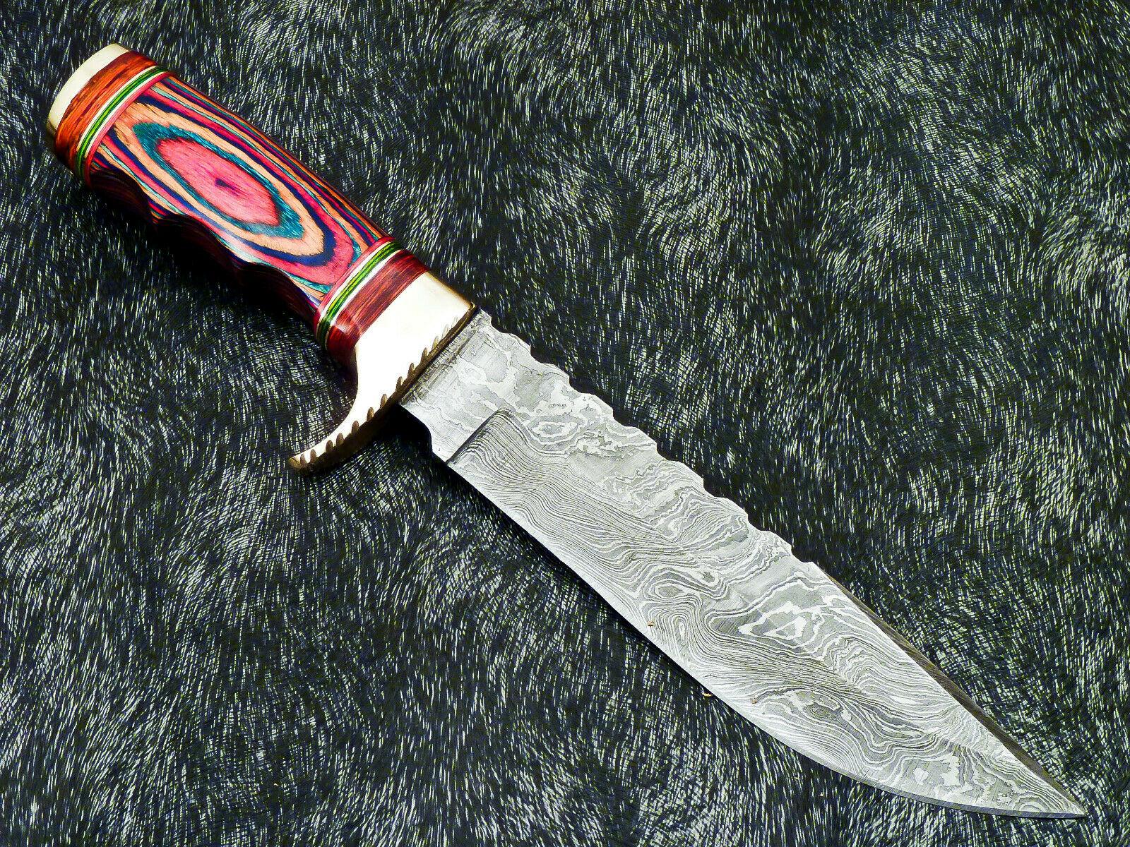 Authentic Hand Forged Damascus 12" Bowie Hunting Knife – Hard Wood Handle