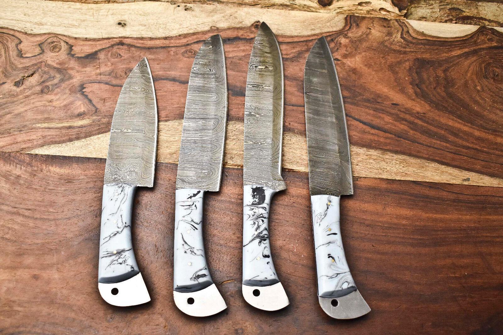 Beautiful Custom Lot of 4 Handmade Damascus Steel Blade Chef Set Kitchen Knives