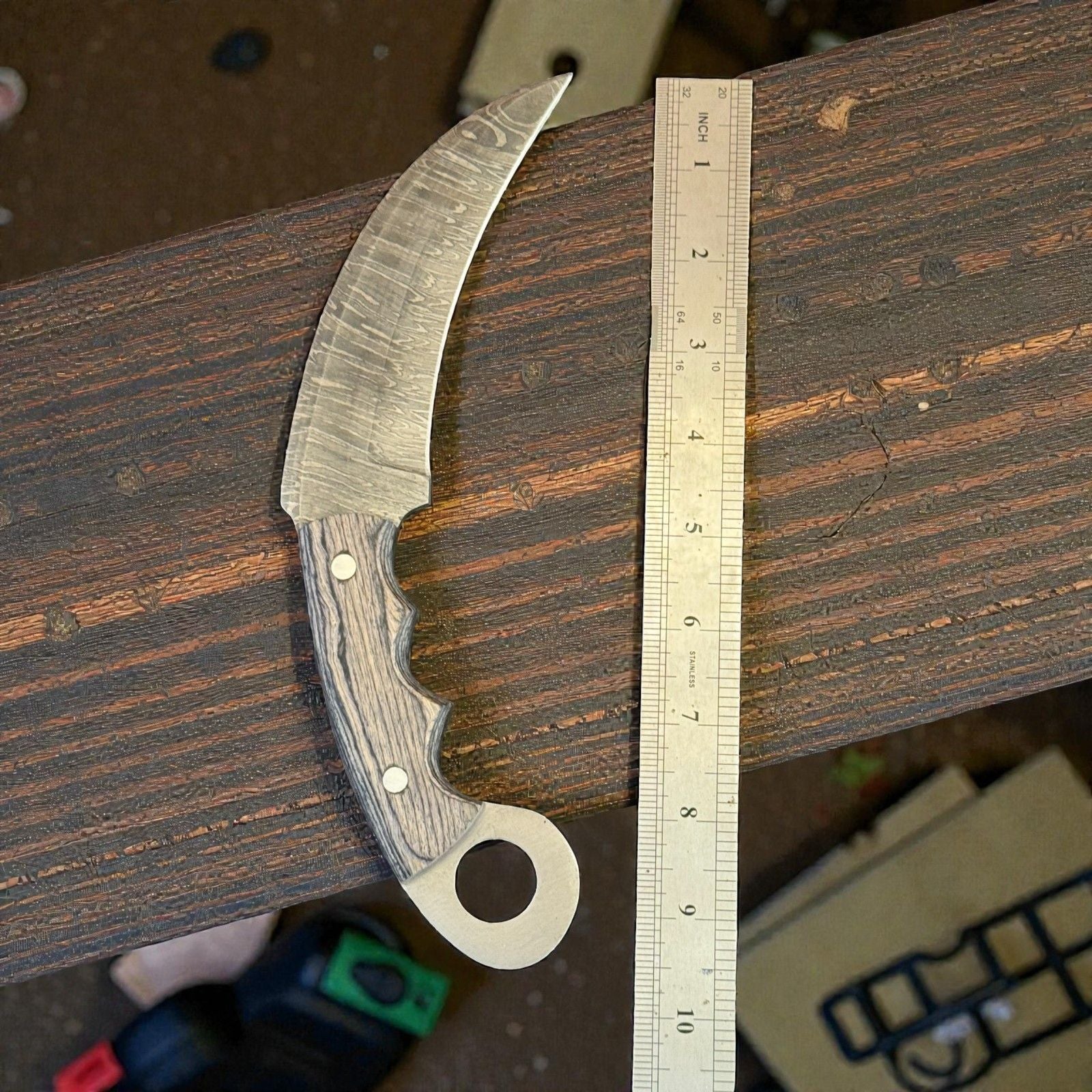 - Handmade damascus karambit with unique forged pattern