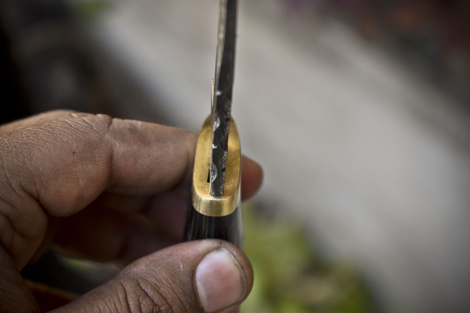 The handle is made from durable hardwood and complemented by a solid brass guard, adding both strength and a touch of classic style. This fixed-blade knife is oil tempered to 58-60 HRC, ensuring toughness and edge retention even under rugged use. The swirl pattern of the twist Damascus blade is mesmerizing, featuring intricate layers formed by folding 1095 and 15N20 steels and finishing with acid etching for bold contrast.
