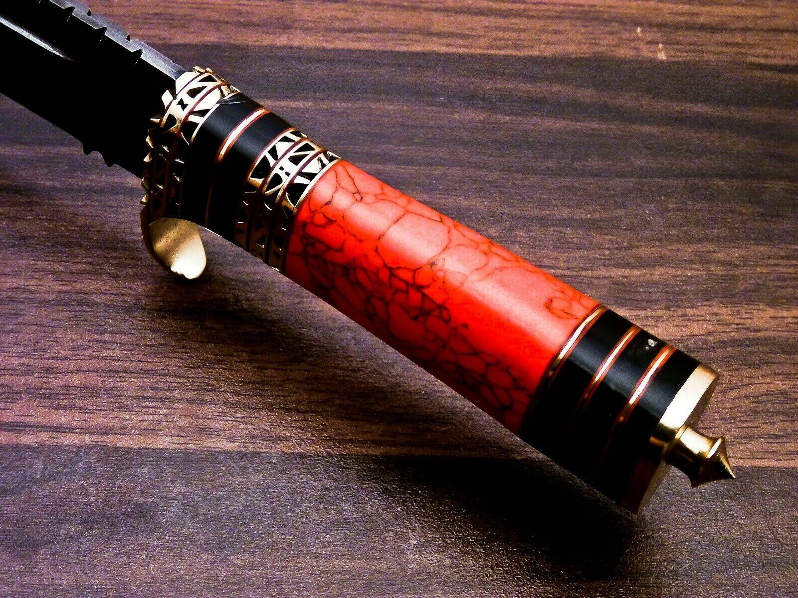 What makes this knife truly unique is its luxurious Red Jasper stone and horn brass handle. The polished jasper adds a vibrant crimson glow, contrasted by natural horn and solid brass fittings that ensure both elegance and durability. The ergonomic grip is designed for comfort and control, making it as functional as it is eye-catching.