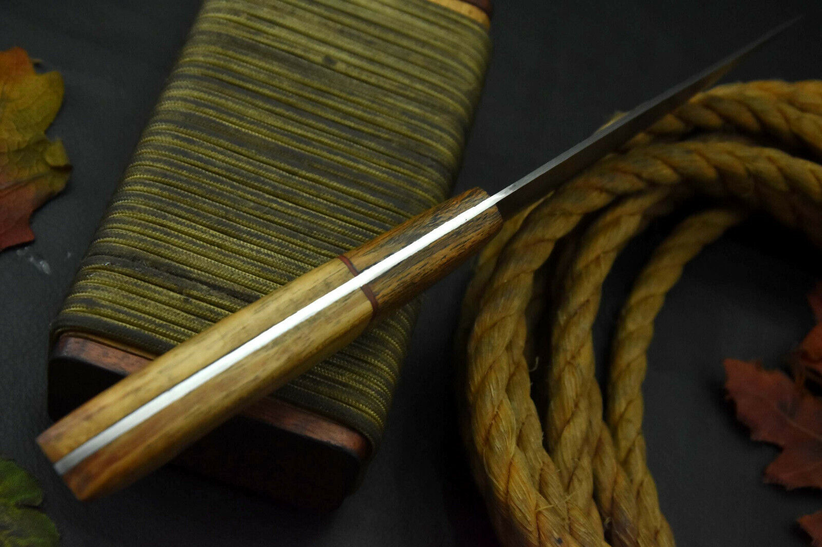 Experience exceptional craftsmanship with this custom 10.6" Damascus steel chef knife, handmade for precision and durability. The blade measures 5.8 inches in length, 1.8 inches in width, and 1.56 mm thick, featuring 512 layers of high-quality Damascus steel with a stunning ladder pattern. Hand-forged for superior balance and strength, this knife achieves a hardness of 56–58 HRC. The 4.8-inch walnut handle provides a comfortable grip and elegant aesthetic, making it ideal for chefs, collectors, and hunters alike. Each knife is unique, showcasing a one-of-a-kind Damascus pattern that ensures both beauty and functionality in the kitchen or field.