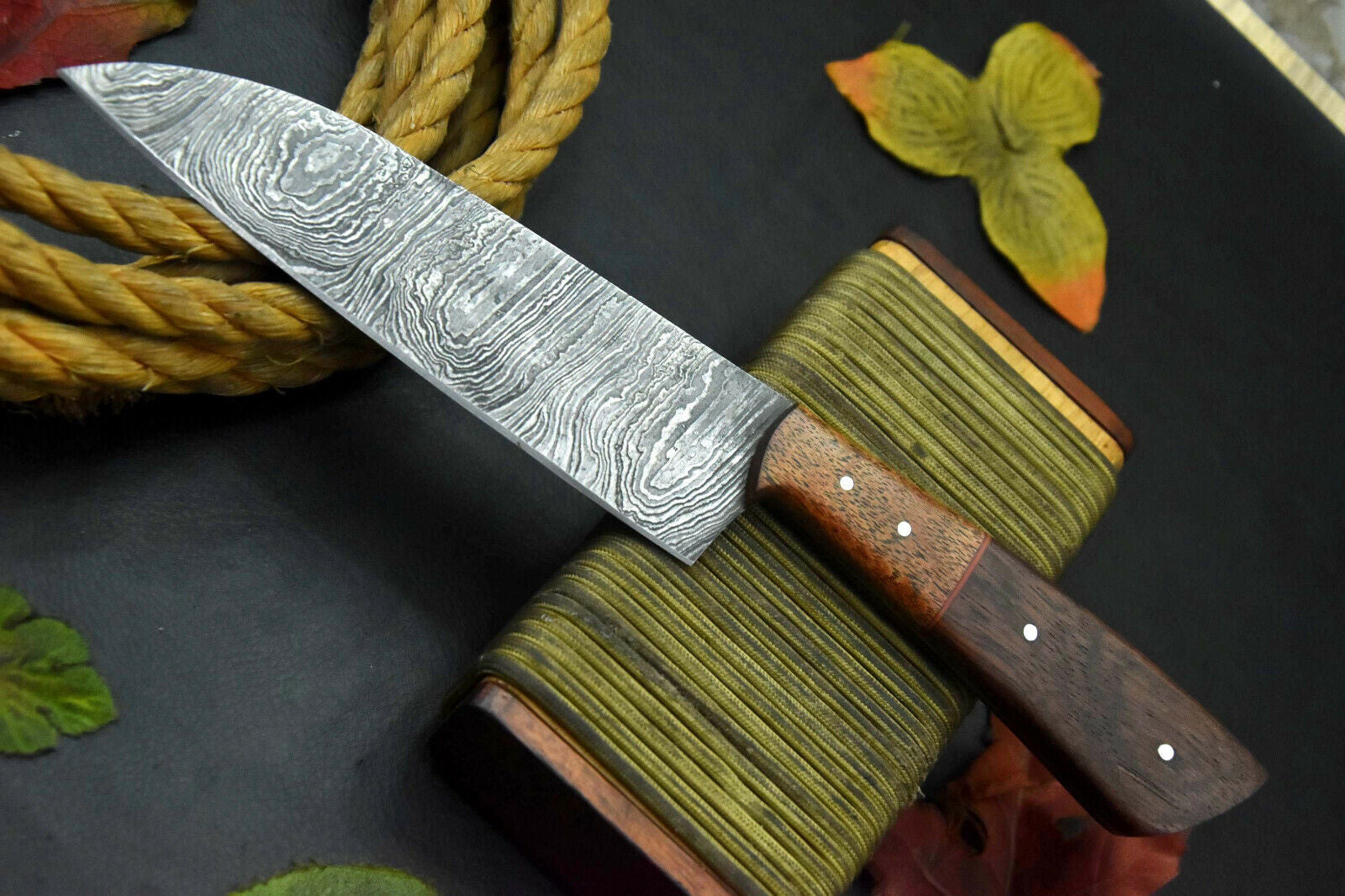 This custom handmade 10.7" overall length Damascus steel chef knife is a beautifully crafted tool designed for professional and home kitchen use. The blade is 6.0 inches long and forged from 512 layers of high-carbon 1095 and 15N20 nickel steel, creating a striking ladder pattern. With a blade thickness of 2.20 mm and a width of 1.5 inches, it offers a perfect balance of durability and control. The knife undergoes a cryogenic heat treatment process in liquid nitrogen to achieve a Rockwell hardness of 56-58 HRC, making it exceptionally tough and wear-resistant. The handle is made from rich walnut wood, offering a comfortable grip and classic aesthetic. This knife not only performs excellently in slicing, dicing, and chopping, but also serves as a premium addition to any chef's collection. Ideal for culinary experts, collectors, or outdoor cooking enthusiasts, the quality and craftsmanship of this knife reflect the signature excellence of Heritage Forge. While functional and reliable, each knife is also visually unique due to the hand-forged nature of the Damascus steel. Please note that this item does not come with a sheath.