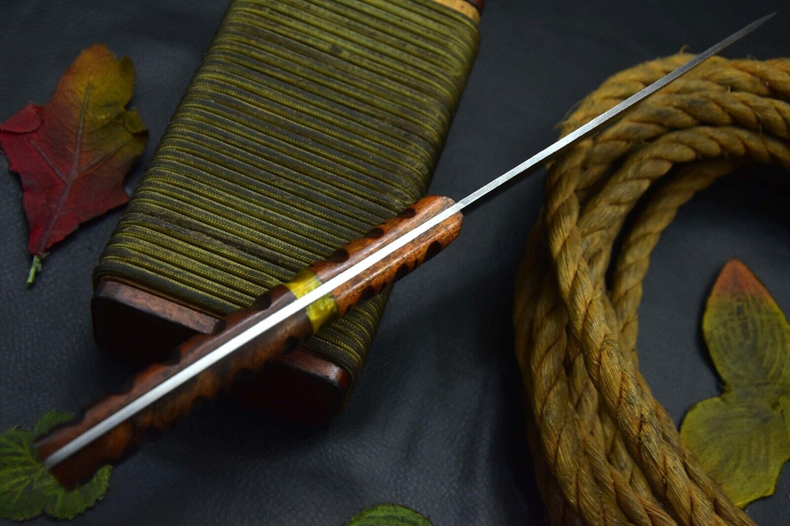 Introducing a stunning Custom Damascus Steel Chef Knife featuring a 12.7" overall length with a 5.7" blade crafted from 512 layers of hand-forged Damascus steel in a unique ladder pattern. The blade is made from premium 1095 high carbon steel combined with 15N20 nickel, cryogenically heat-treated in liquid nitrogen to enhance hardness and durability, reaching 56-58 HRC. The 2.3mm thick blade is complemented by a beautifully crafted walnut handle, offering both elegance and comfort. This knife is perfect for collectors, hunters, and professional chefs who appreciate outstanding craftsmanship and superior performance. We provide fast priority shipping and welcome international customers. For any inquiries or combined shipping discounts, feel free to contact us. Add this exceptional piece to your collection or kitchen today!