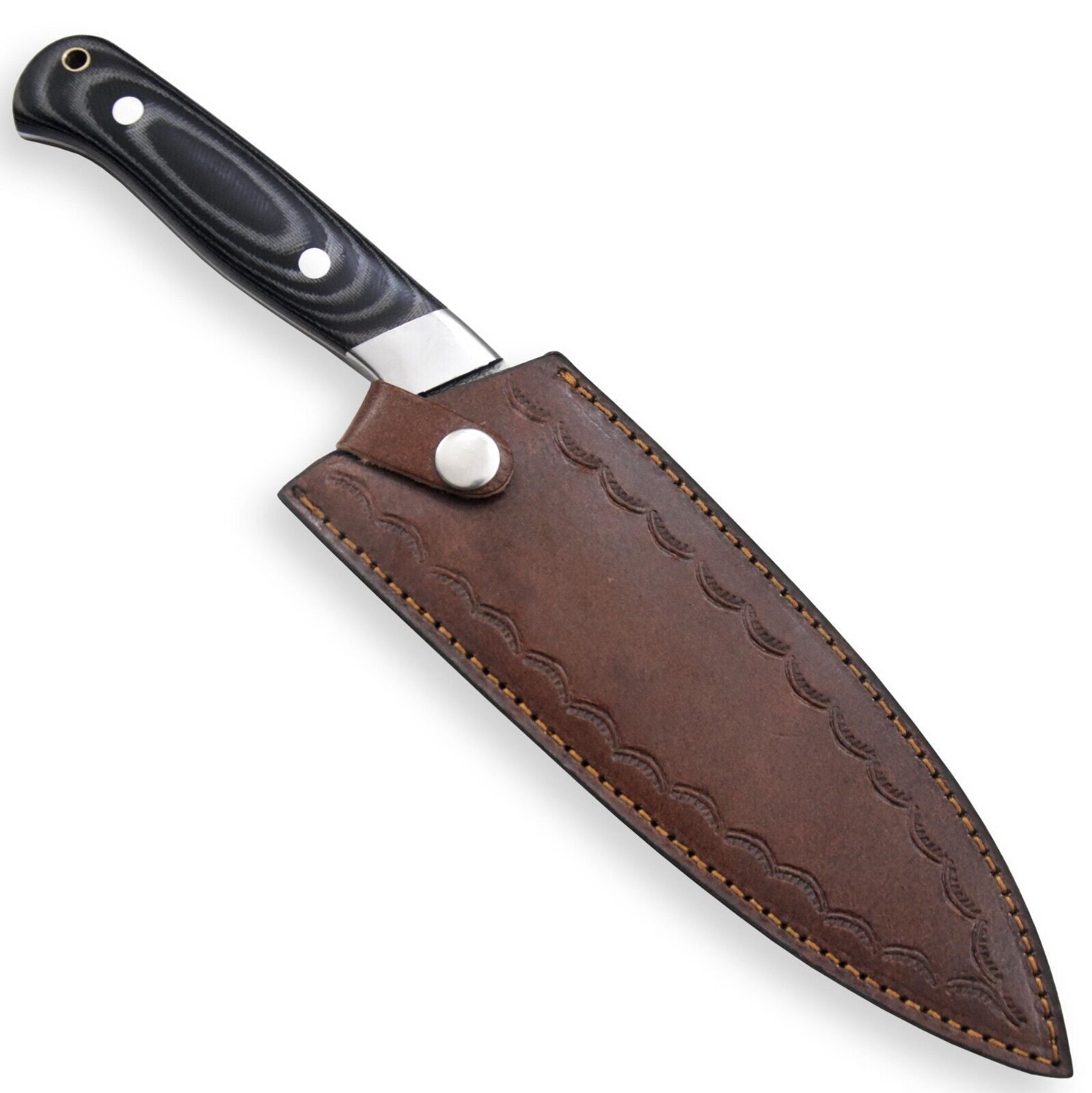 Experience professional craftsmanship with this Custom Handmade Damascus Steel Chef Knife, proudly forged in Pakistan. Designed with a premium G-10 Micarta handle and a stunning Damascus steel blade, this knife delivers strength, precision, and style.