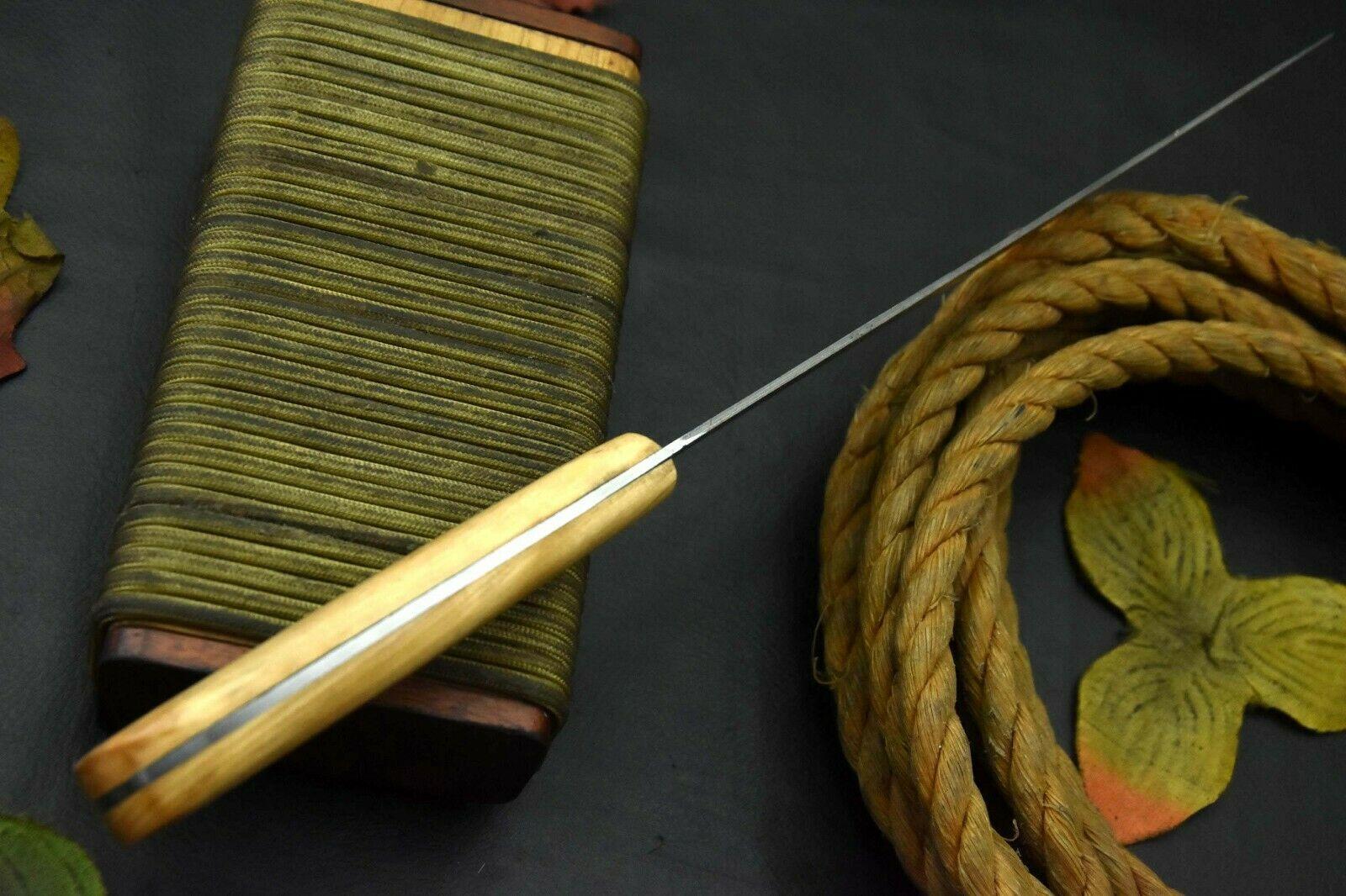 This 13.0" OAL damascus fillet knife is a premium handcrafted blade built for hunters, anglers, and outdoor enthusiasts. Designed as a high-performance custom fillet knife, it offers precision, durability, and long-lasting sharpness. Whether you're using it as a damascus fishing knife on your latest catch or as a reliable outdoor blade, this knife delivers exceptional control and clean cuts. Crafted with a beautiful ladder pattern, this damascus steel fillet knife performs flawlessly as a damascus filleting knife and damascus fish knife. If you are searching for the best fillet knife that combines strength and elegance, or simply a dependable good fillet knife, this handcrafted option stands out among other handmade fillet knives. It also comes as a fillet knife with sheath, making it safe and convenient for storage and transport.