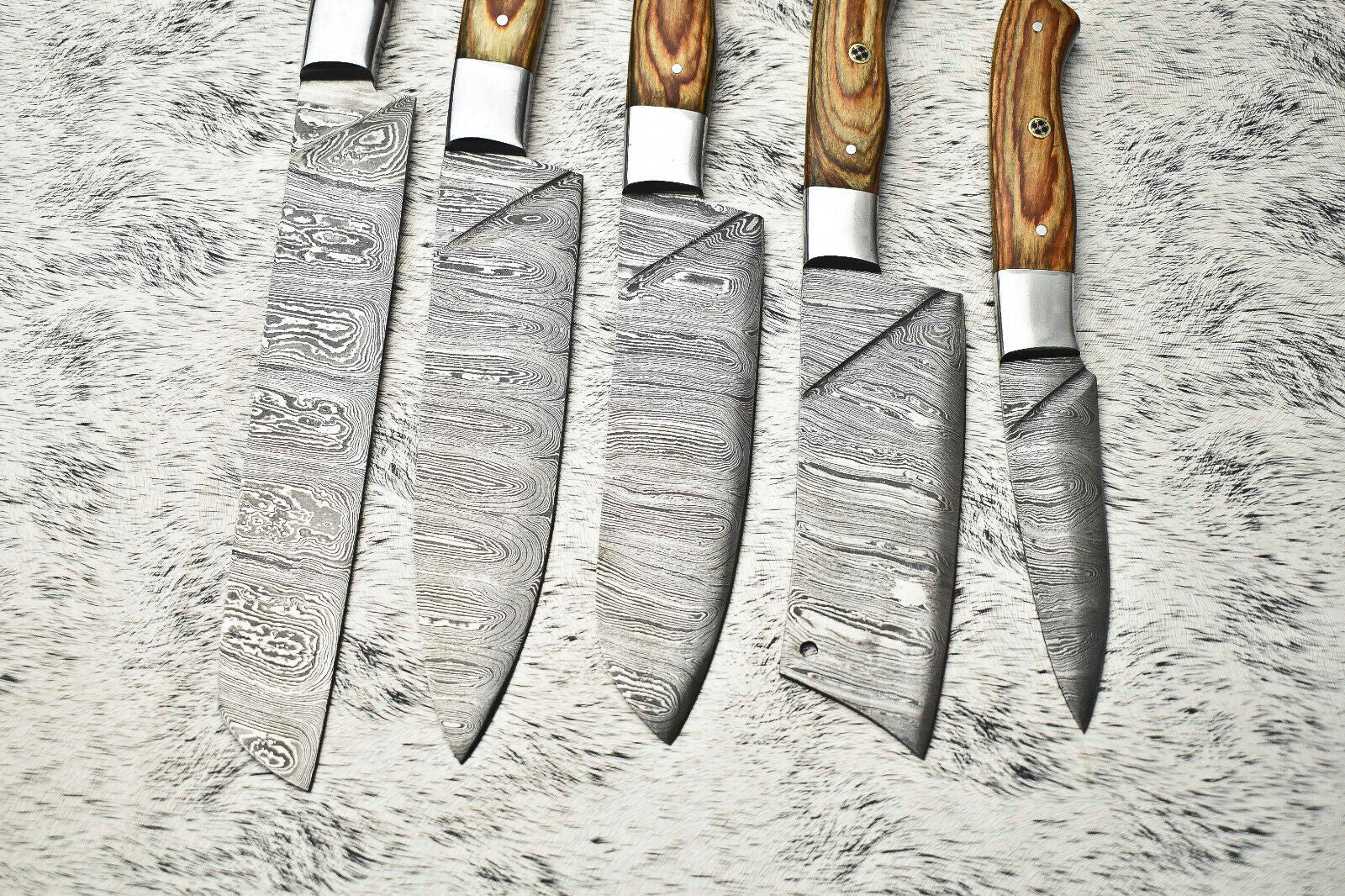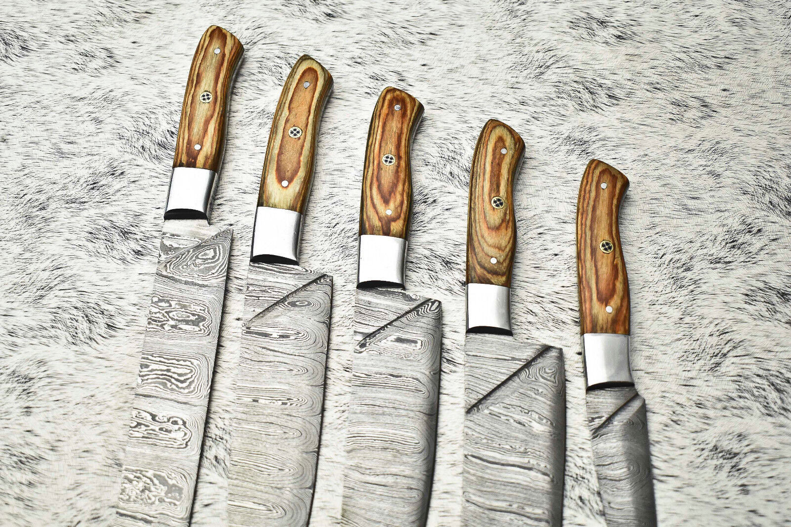 Custom 5-Piece Handmade Damascus Steel Chef Knife Set | Full Tang Kitchen Knives