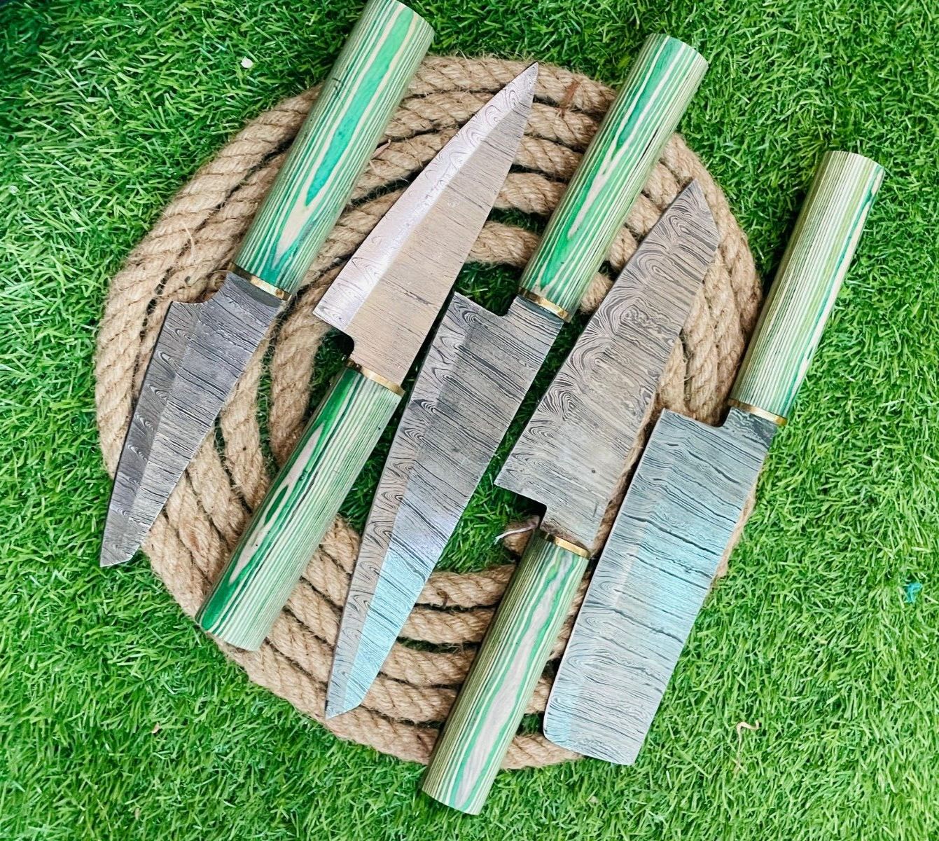 Custom 5-Piece Handmade Damascus Steel Chef Knife Set with Leather Bag – Kitchen Cutlery