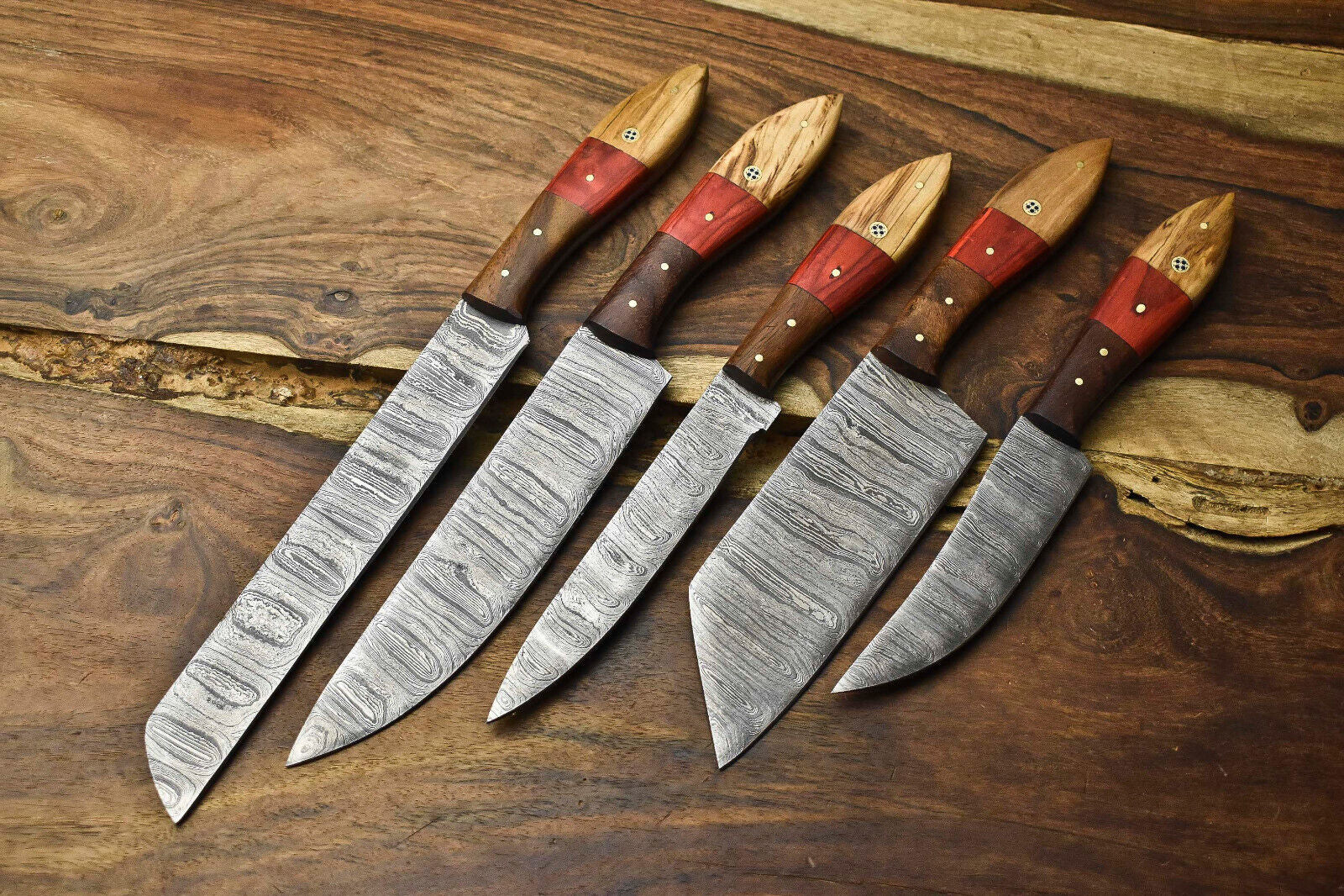 Custom 6-Piece Handmade Damascus Steel Chef Knife Set – Full Tang Artisan Blades