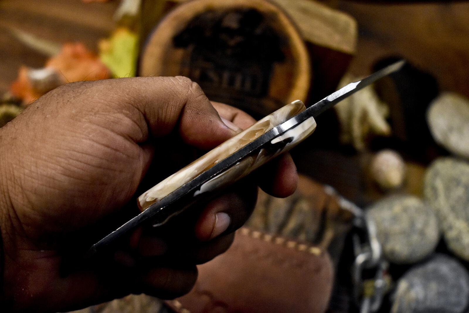 The handle is crafted from durable Resin, offering a comfortable and secure grip.As a karambit handmade style knife, it reflects solid craftsmanship and practical usability. The integrated safety ring enhances stability and reduces the risk of slipping during use.