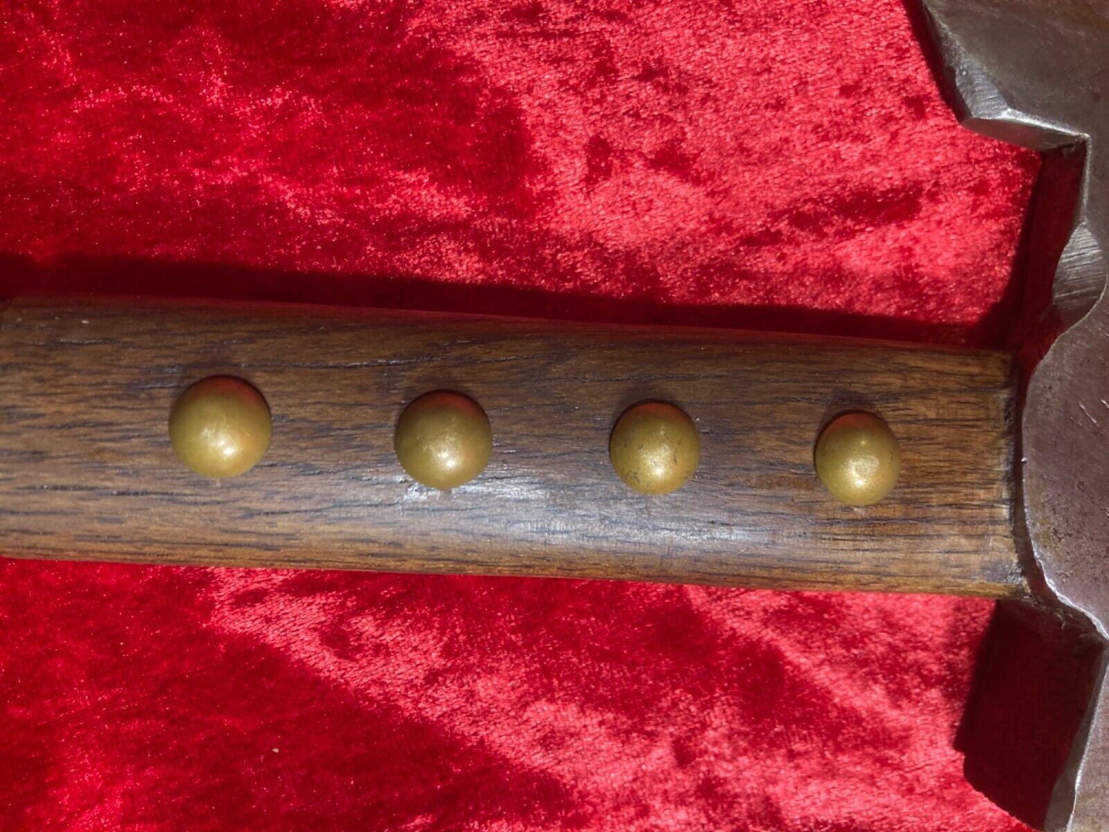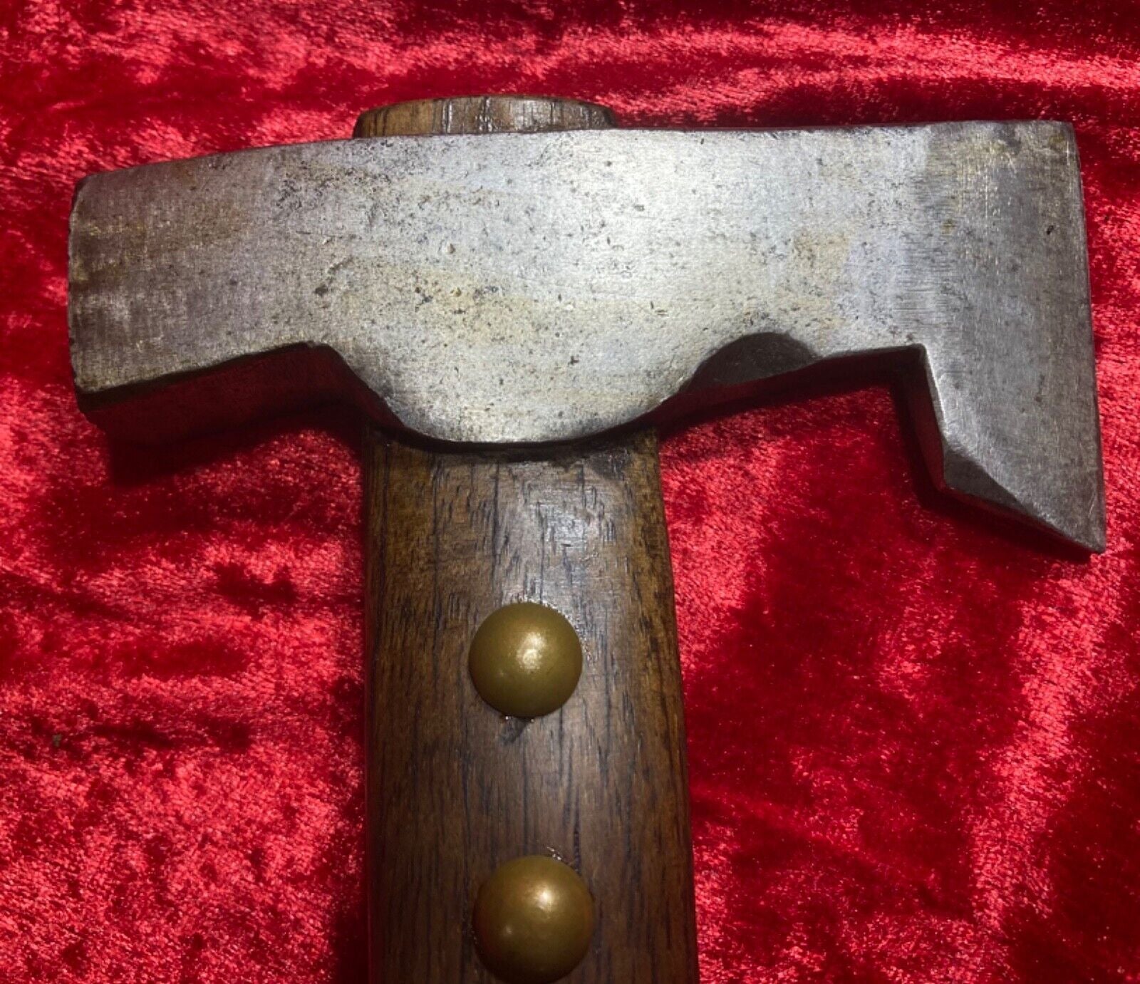This handmade bearded tomahawk is a compact yet powerful tool, crafted for hunting, butchering, camping, and outdoor adventures. Designed with a traditional Norse influence, the axe features a sharp 2-inch cutting edge and a solid 4.5-inch axe head, providing precision and control for detailed work such as splitting, carving, or processing game.With an overall length of 11 inches and weighing just 1 pound, this belt axe is lightweight, portable, and easy to carry during hunting trips or outdoor treks. The hardwood handle is ribbed and grooved for a secure grip, while brass tacks add both durability and improved handling. A sturdy steel loop and heavy leather wrist strap ensure safety and convenience in use, making it a reliable companion for hunters and outdoorsmen alike.Forged from high-quality carbon steel, this axe is built for edge retention and long-lasting performance. Its compact size, sharp edge, and rugged construction make it not only a practical EDC tomahawk but also a collectible piece for enthusiasts of Viking-inspired tools.