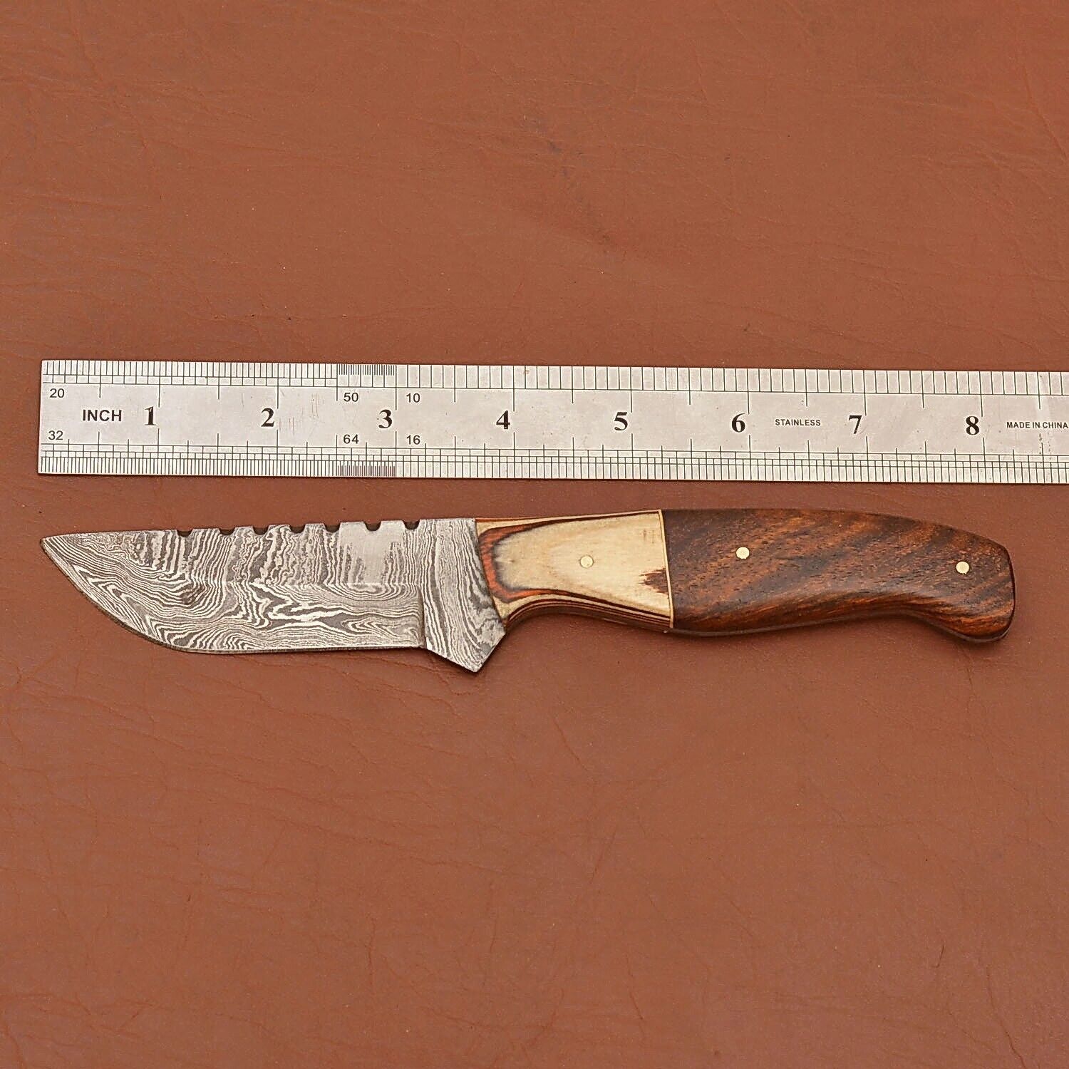 Custom Damascus Skinner Knife Wood Handle for Hunting Camping Survival Use