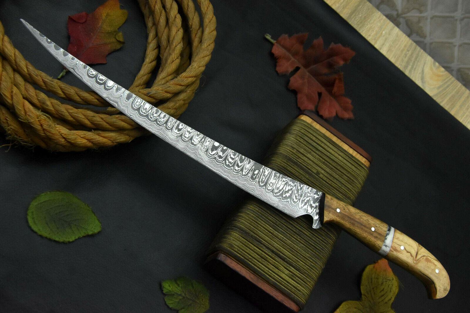 Custom Damascus Steel Fillet Knife Damascus Fillet Knife With Olive & Walnut Handle