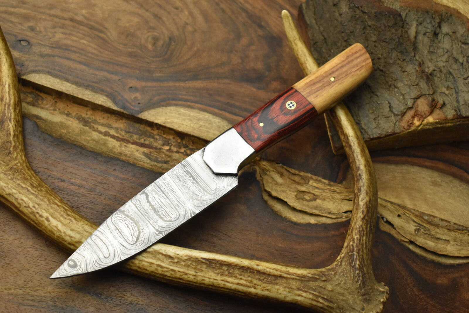 Custom Forged Chef Knife Twist Damascus Pakka Wood Steel Bolster Hunting