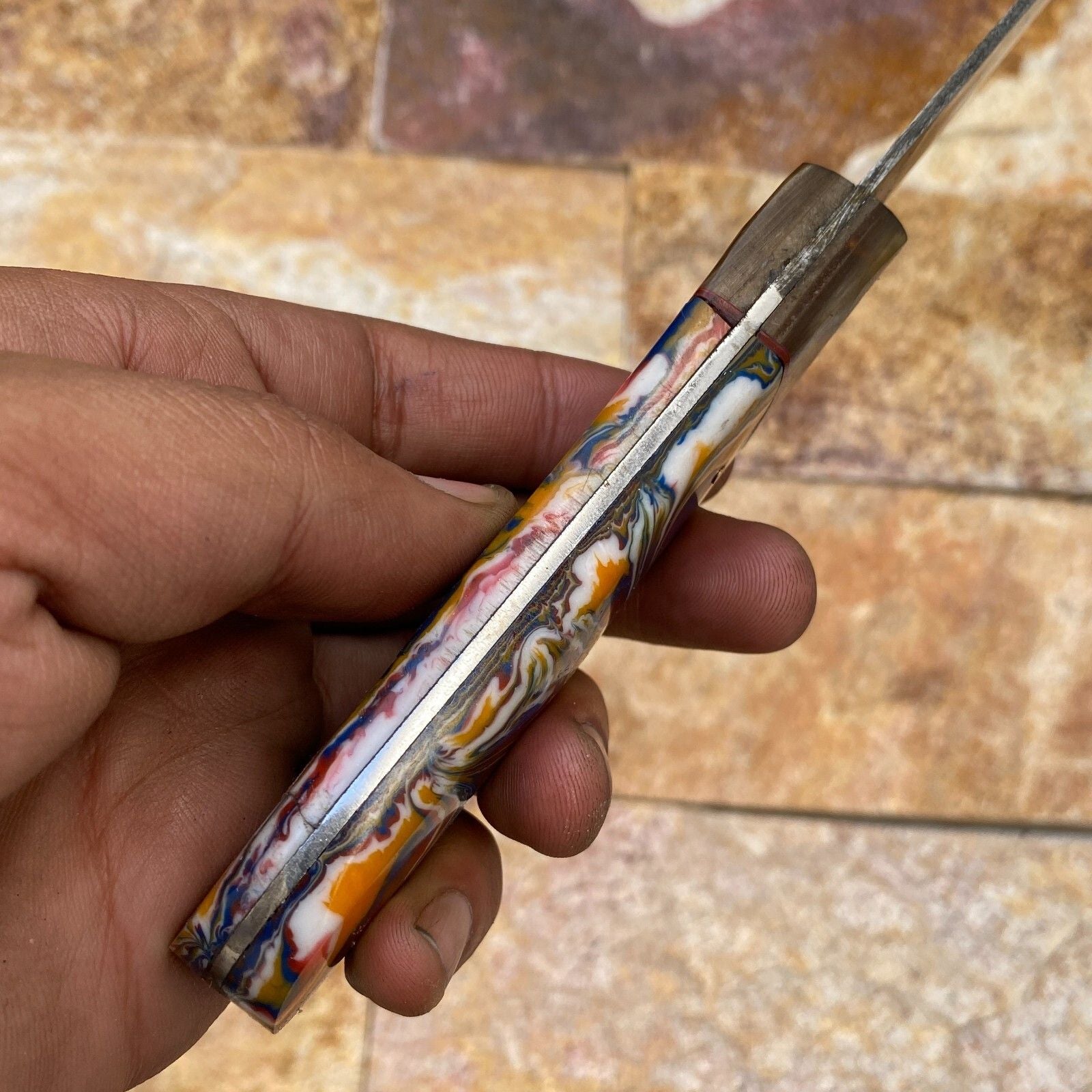 Custom Forged Damascus Steel Fishing Fillet Chef Knife – Resin & Brass Handle