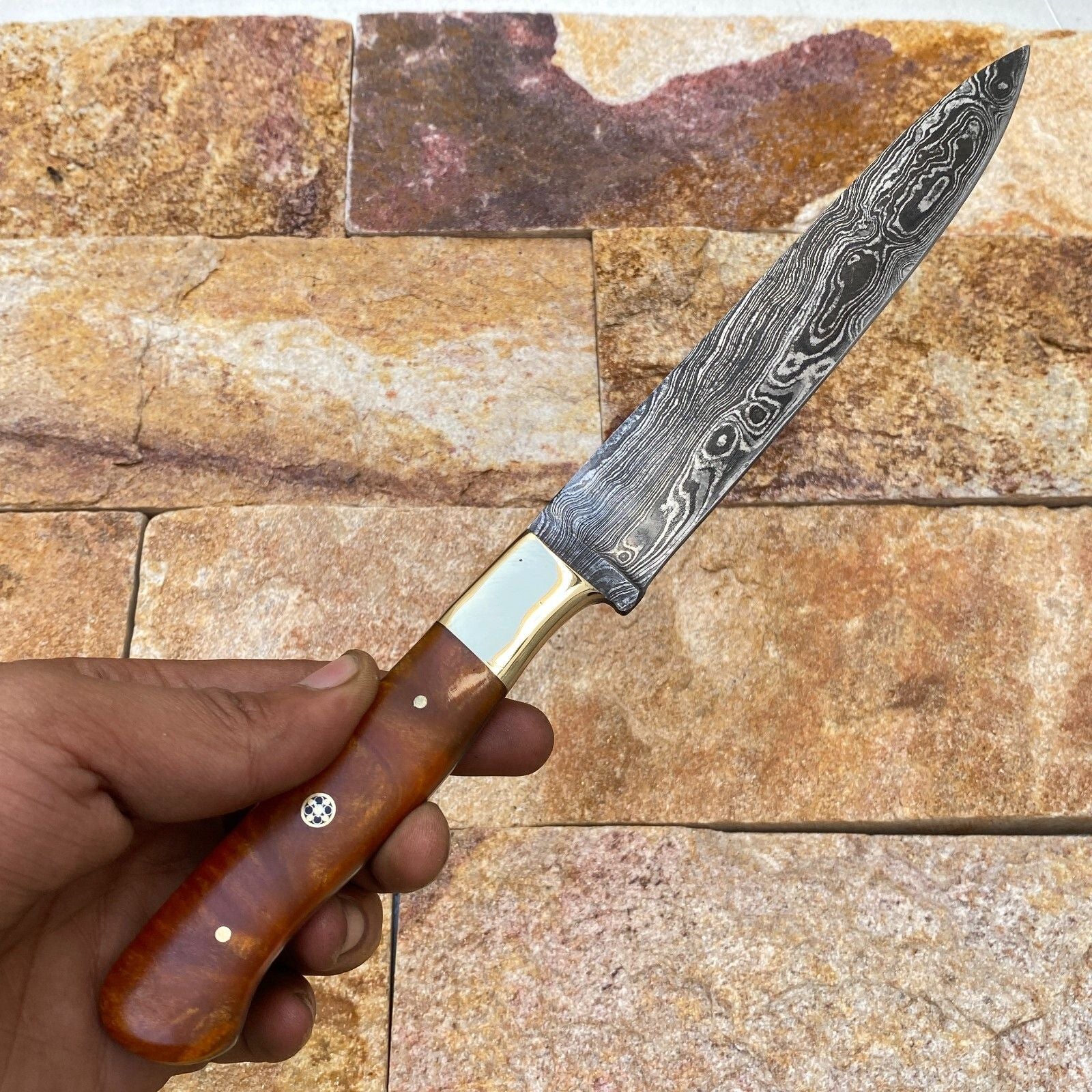 Custom Forged Damascus Steel Fishing Fillet Chef Knife – Resin & Brass Handle