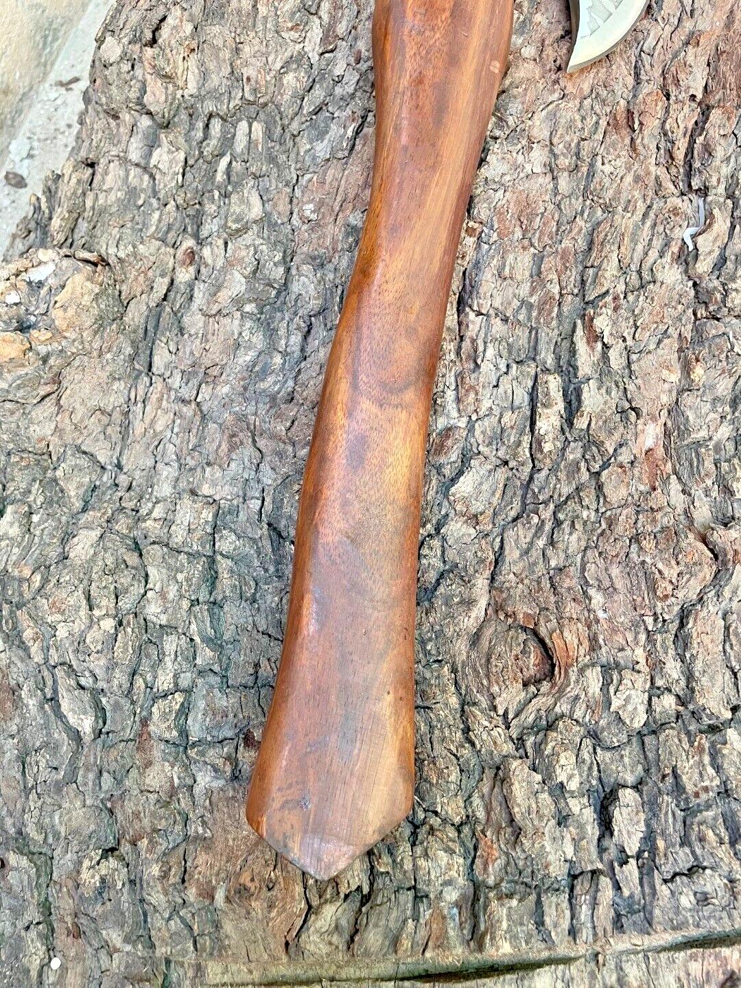 This custom forged viking fighting axe is a durable and versatile tool, hand-forged to deliver both authenticity and strength. Measuring approximately 20 inches in overall length, this axe is built with a full tang high carbon steel blade, offering superior cutting power for demanding outdoor tasks. The etched detailing on the head pays tribute to the artistry of the historic war axe viking, making it a functional tool as well as a collector’s showpiece. Its solid wooden handle, finished in a natural brown tone, provides a firm and comfortable grip suitable for ambidextrous use, giving this piece the versatility of a two handed viking axe. Perfect for camping, bushcraft, or jungle cutting, this viking dane axe design reflects the enduring craftsmanship of Norse-inspired tools. The axe embodies the legendary tradition of vikings battle axe culture while evoking the rugged appeal of steel axe osrs, steel city axes, and the steel woods axe. A custom leather sheath is included to ensure safe storage and easy transport. Whether used in outdoor adventures or displayed as part of a collection, this replica viking axe celebrates the bold imagery of the viking crossed axes and the enduring legacy of viking war axes.