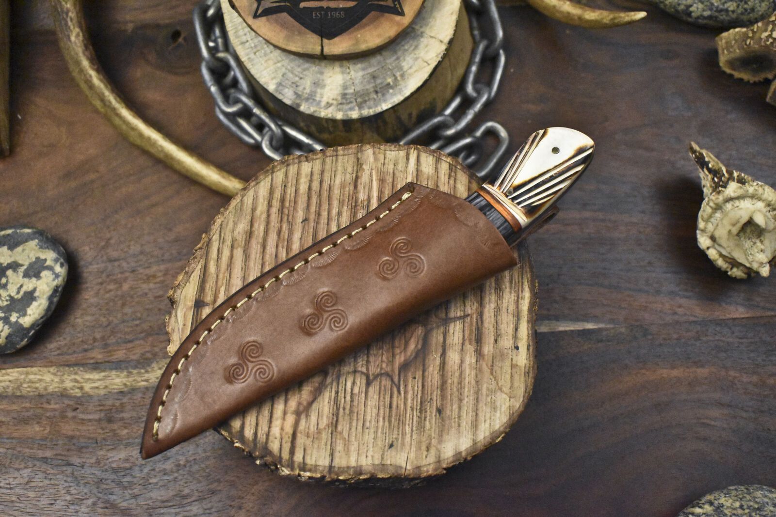 A genuine leather sheath is included, making this a ready-to-gift handmade skinner damascus knife for collectors or outdoorsmen. Whether you're looking for a dependable damascus skinner hunting knife or a unique damascus skinner knife for sale, this limited piece promises unmatched craftsmanship and performance.
