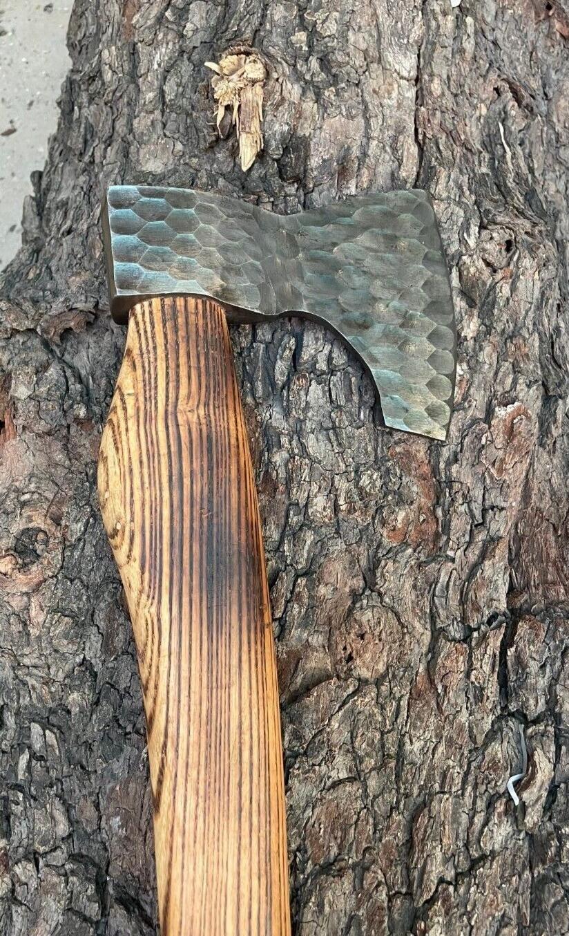 This custom forged Viking axe is a rugged and versatile tool, perfect for bushcraft, camping, and outdoor adventures. Hand-forged from high carbon steel, the blade is exceptionally durable, sharp, and designed for heavy-duty tasks such as chopping firewood, clearing brush, and cutting through jungle wood. With an overall length of approximately 20 inches, this axe strikes the perfect balance between power and control, making it reliable for both fieldwork and tactical use.