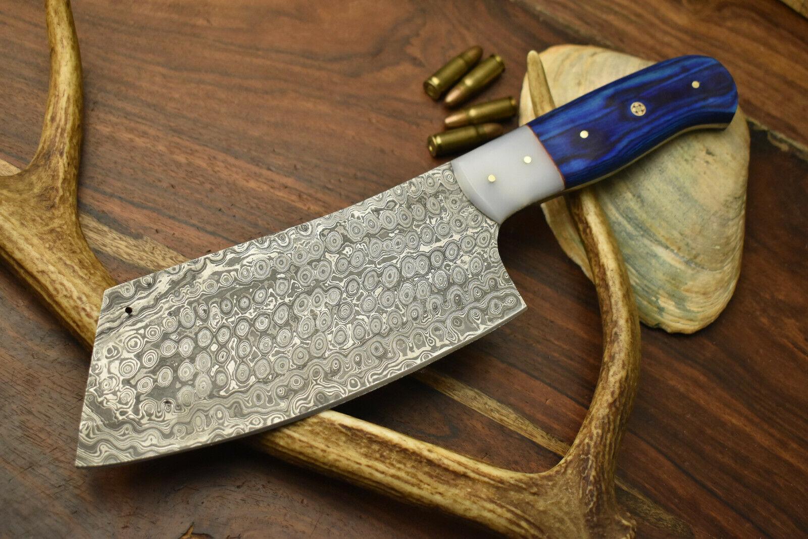 This Custom Hand Made Damascus Steel Chef Chopper Knife is a true masterpiece for your kitchen collection. With an overall length of 12 inches, the knife features a razor-sharp 7-inch blade and a sturdy 5-inch handle designed for a comfortable grip. The blade is oil tempered to 58-60 HRC and sharpened at 20 degrees, ensuring precision cutting for professional chefs and home cooks alike. Hand-forged with genuine Damascus steel, the blade is crafted by folding 1095 high carbon steel and 15N20 nickel steel together over 384 layers, creating a stunning wave-like pattern unique to each knife. The acid-etched finish reveals the striking contrast of nickel’s satin color and carbon’s blackish gray tones, making this knife both functional and artistic. Built with durability, sharpness, and beauty in mind, this chopper knife is perfect for chopping, slicing, and heavy-duty kitchen tasks. The knife you see in the photos is exactly what you will receive—crafted with care and designed to last a lifetime.