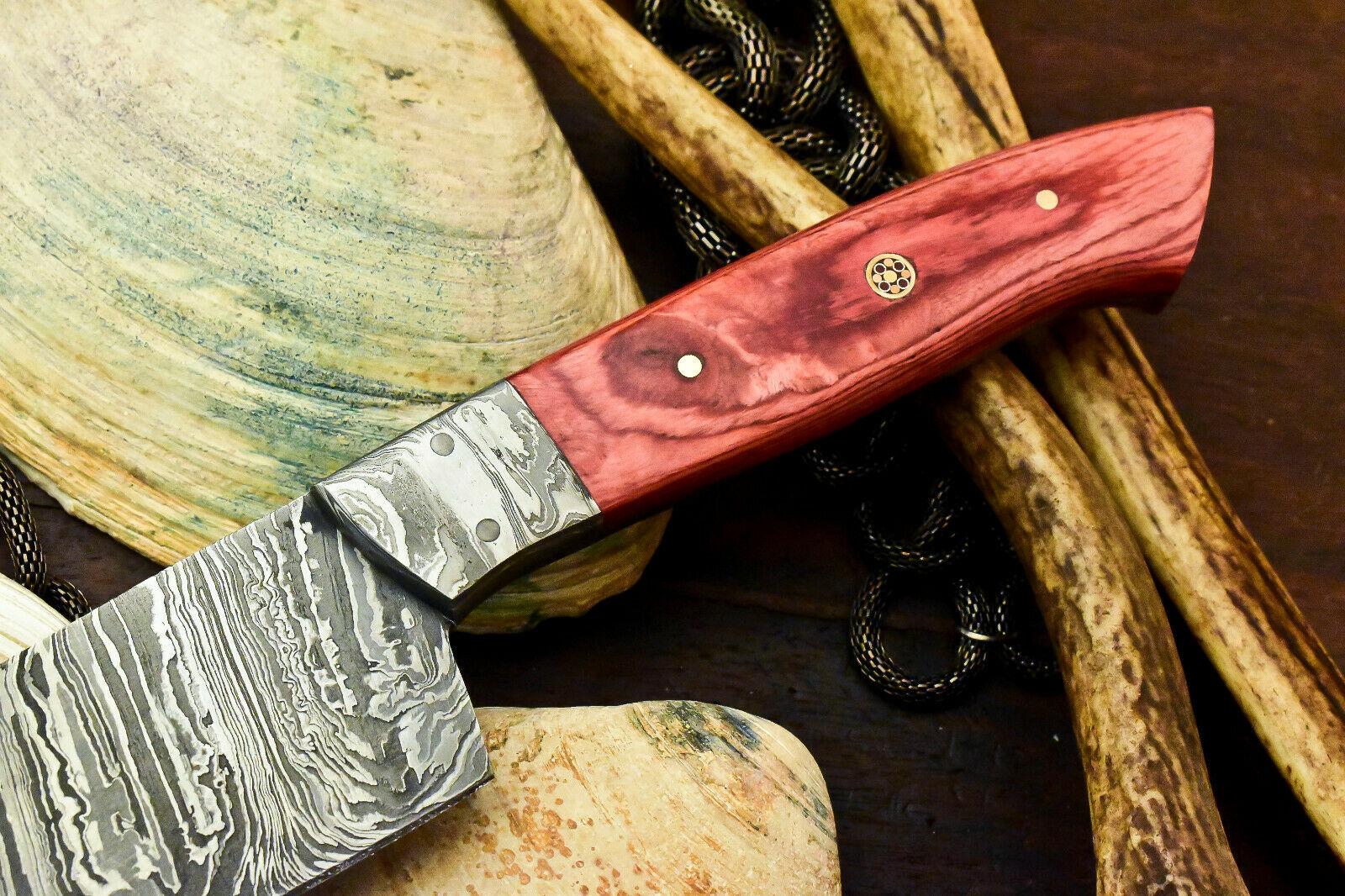 This custom handmade Damascus steel chef knife with a hard wood handle is a perfect blend of craftsmanship, durability, and precision. The knife shown in the photos is the exact item you will receive, ensuring authenticity. Featuring a 7-inch blade, a 5-inch hard wood handle, and an overall length of 12 inches, this knife is ideal for professional chefs, home cooks, or knife collectors. The blade is forged from a premium mixture of 1095HC and 15N20 nickel carbon steel, folded repeatedly to create 384 layers, and then acid-burned to reveal the intricate Damascus pattern. Sharpened at 20 degrees and oil-tempered to 58-60 HRC, it provides excellent edge retention and precise cutting performance.The full tang construction and polished hard wood handle ensure superior balance, strength, and durability. Each knife is 100% handmade, with no CNC machining, making every piece unique with its own individual characteristics. This handcrafted Damascus chef knife is both a functional tool and a collectible piece of art, perfect for daily use or display.