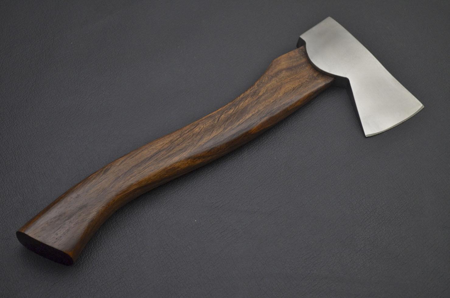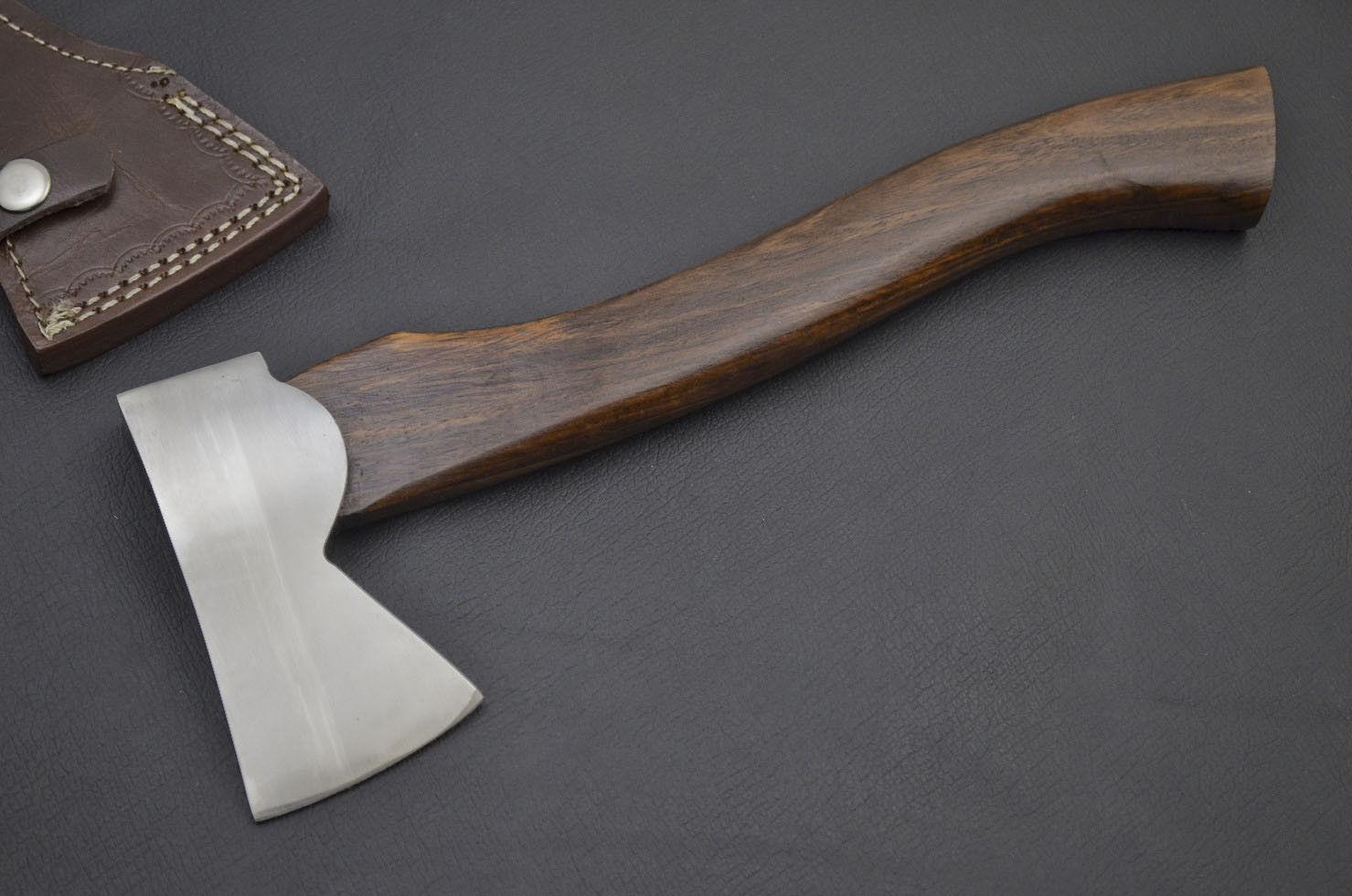 Discover the perfect blend of artistry and functionality with this Custom Hand-Made Stainless Steel Viking Tomahawk Axe. Every piece is meticulously crafted from premium stainless steel, ensuring long-lasting durability and a sharp, reliable edge. The overall handle length measures 12 inches, while the axe blade extends 4.25 inches with a 2.5-inch cutting edge, providing excellent balance and control for a variety of bushcraft, tactical, or display purposes.The handle is carefully shaped from beautiful rosewood, making each axe not only functional but also a stunning work of art. Every handle is hand-finished for comfort, grip, and durability, complementing the precision-forged stainless steel head. Included is a top-quality, hand-tooled leather sheath, sewn with extra-thick leather and strong stitching to ensure long-term protection and usability. The sheath is designed to be worn on a belt for convenient access.