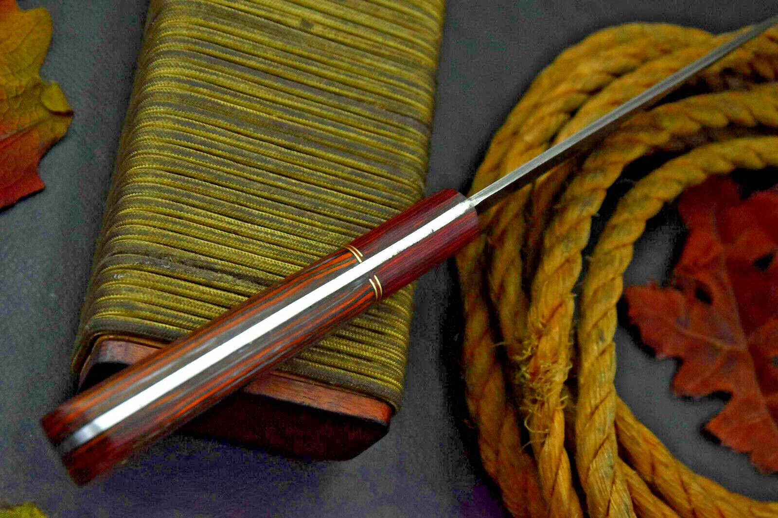 Experience precision and craftsmanship with this custom handmade Damascus Steel Chef Knife. Measuring 11.2 inches in overall length, this knife features a razor-sharp Damascus steel blade, renowned for its durability and edge retention. The handle is crafted from premium wood, providing a comfortable and secure grip for both professional chefs and home cooks. Perfect for slicing, chopping, and filleting, this knife combines elegance with functionality, making it an essential addition to any kitchen.
