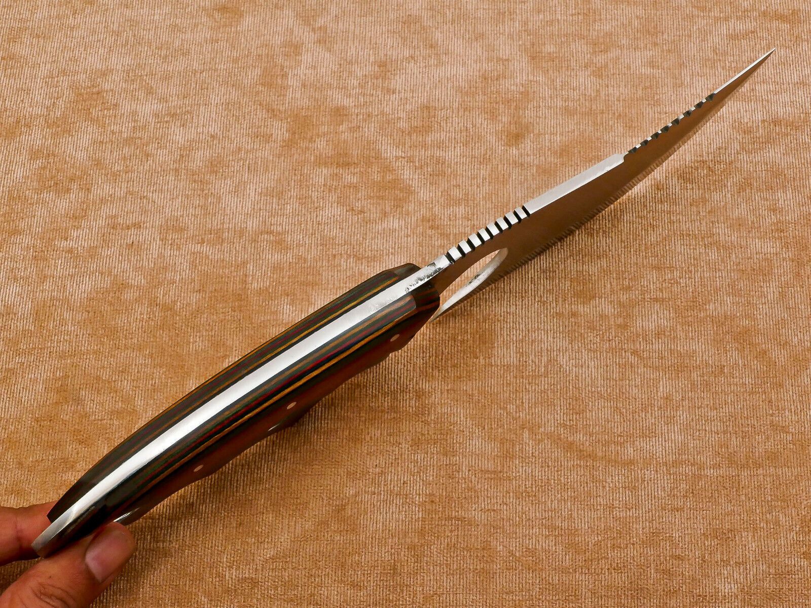 Experience the perfect combination of strength, precision, and craftsmanship with this handmade 12-inch D2 clip point full tang Bowie hunting knife. Expertly forged from premium D2 tool steel, this blade delivers outstanding sharpness, durability, and edge retention, making it a reliable companion for hunting, camping, or survival tasks. The clip point blade design enhances control and penetration, allowing for precise cutting, skinning, and piercing in demanding outdoor environments.The full tang construction ensures maximum strength and balance, providing confidence and stability during heavy-duty use. Its ergonomically crafted handle is designed for a secure and comfortable grip, reducing hand fatigue during extended tasks in the field. This knife comes complete with a handmade leather sheath for safe storage and convenient carrying, making it a versatile tool for hunters, campers, survivalists, and collectors alike.