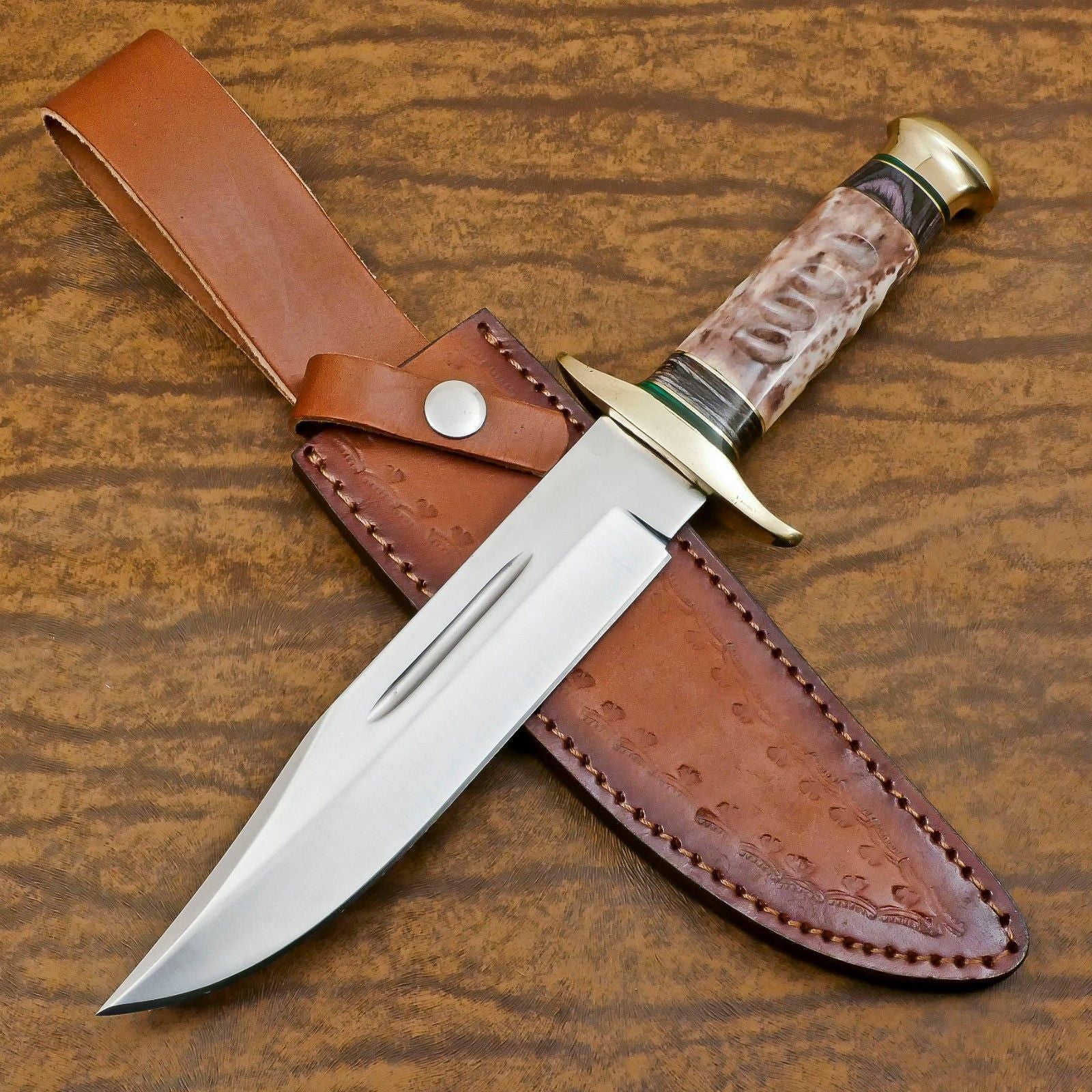 Custom Handmade 12 Inch D2 Steel Blade Hunting Bowie Camping Knife – Full Tang Survival Knife