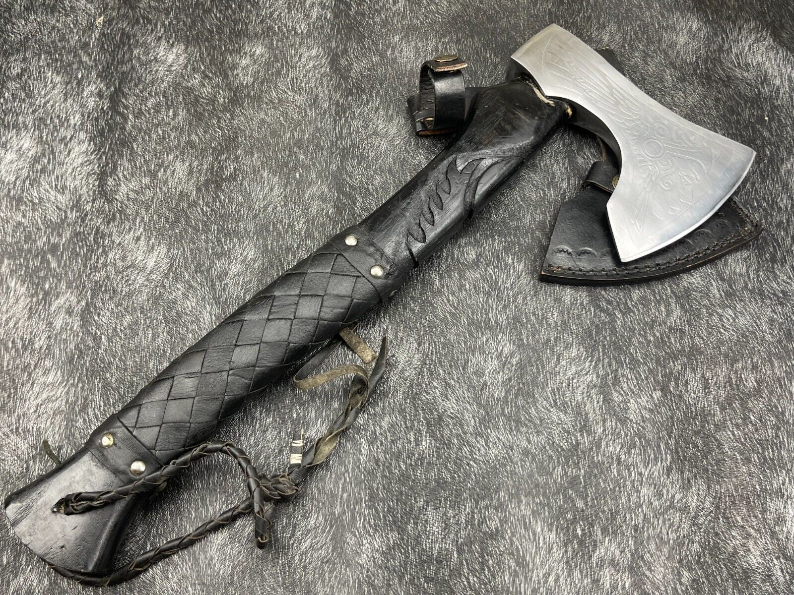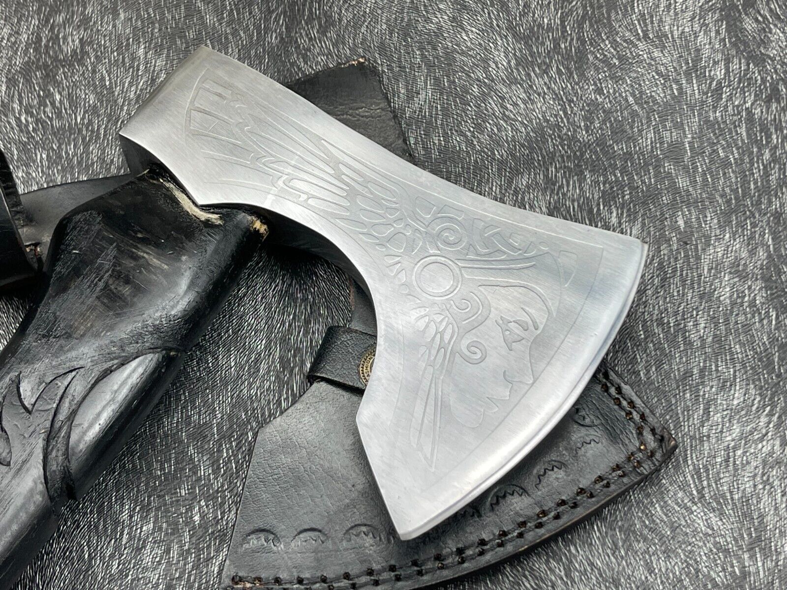 The hand-engraved natural wood handle provides a comfortable and secure grip, enhanced with leather wrapping for both style and utility. This axe comes with a high-quality leather sheath for safe storage and easy transport. Fully handmade, every axe has its own unique characteristics, reflecting true Viking artistry and craftsmanship. Whether used for camping, hunting, outdoor activities, or as a collectible gift, this Viking axe stands out as a beautiful combination of tradition, design, and functionality, making it a perfect gift for enthusiasts, history lovers, and collectors.