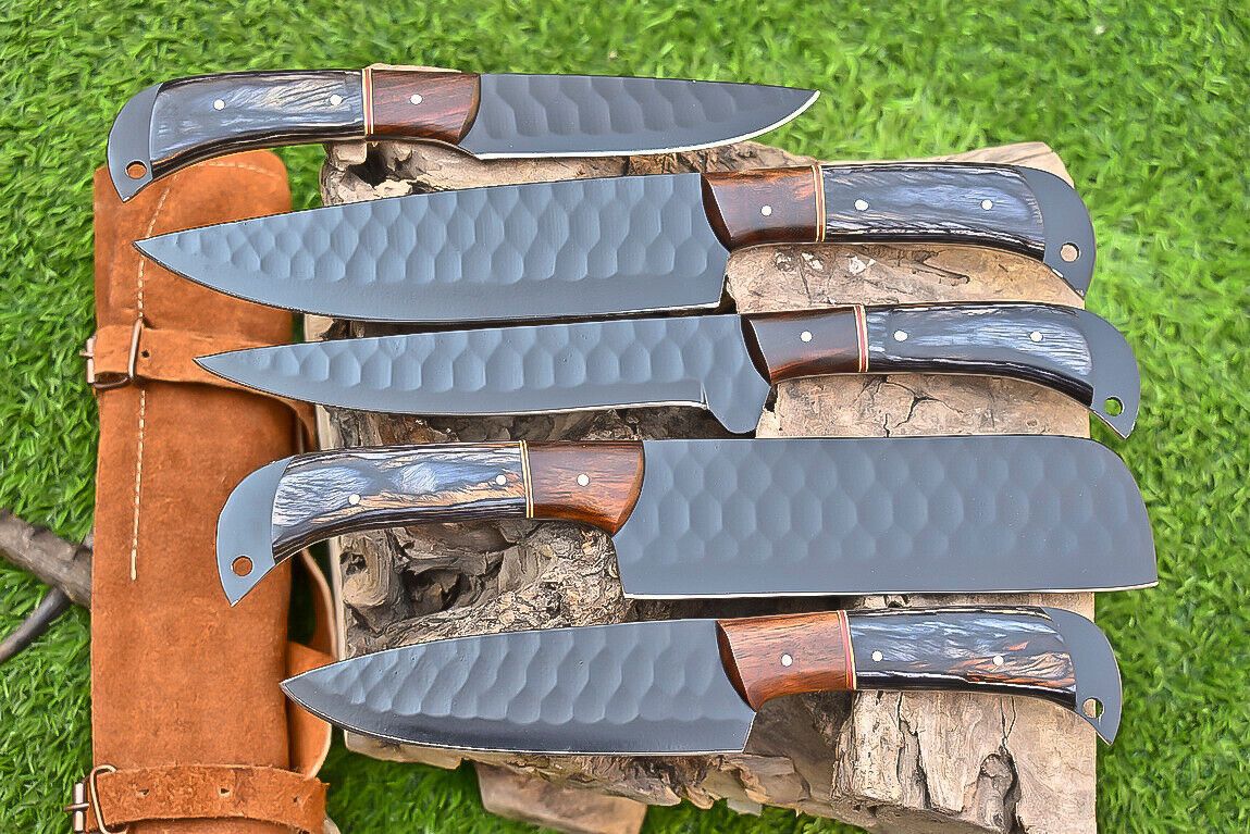 Custom Handmade Carbon Steel Kitchen Chef Set With Black Wood Handle