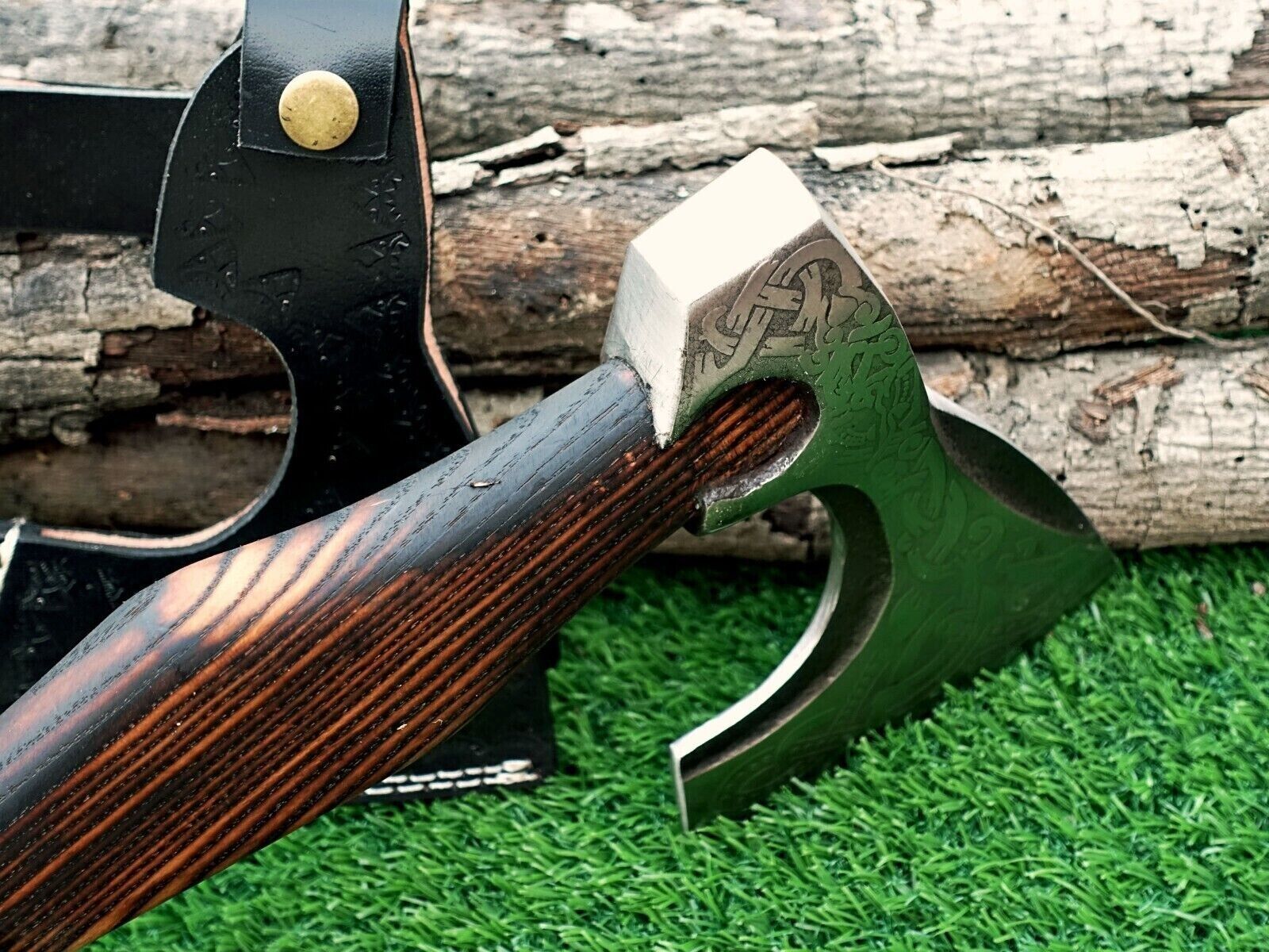 This custom handmade Viking bearded axe is forged from high-quality carbon steel, designed to be both a functional outdoor tool and a striking collectible piece. With its engraved detailing and traditional craftsmanship, it captures the spirit of Norse weaponry while remaining practical for modern use.