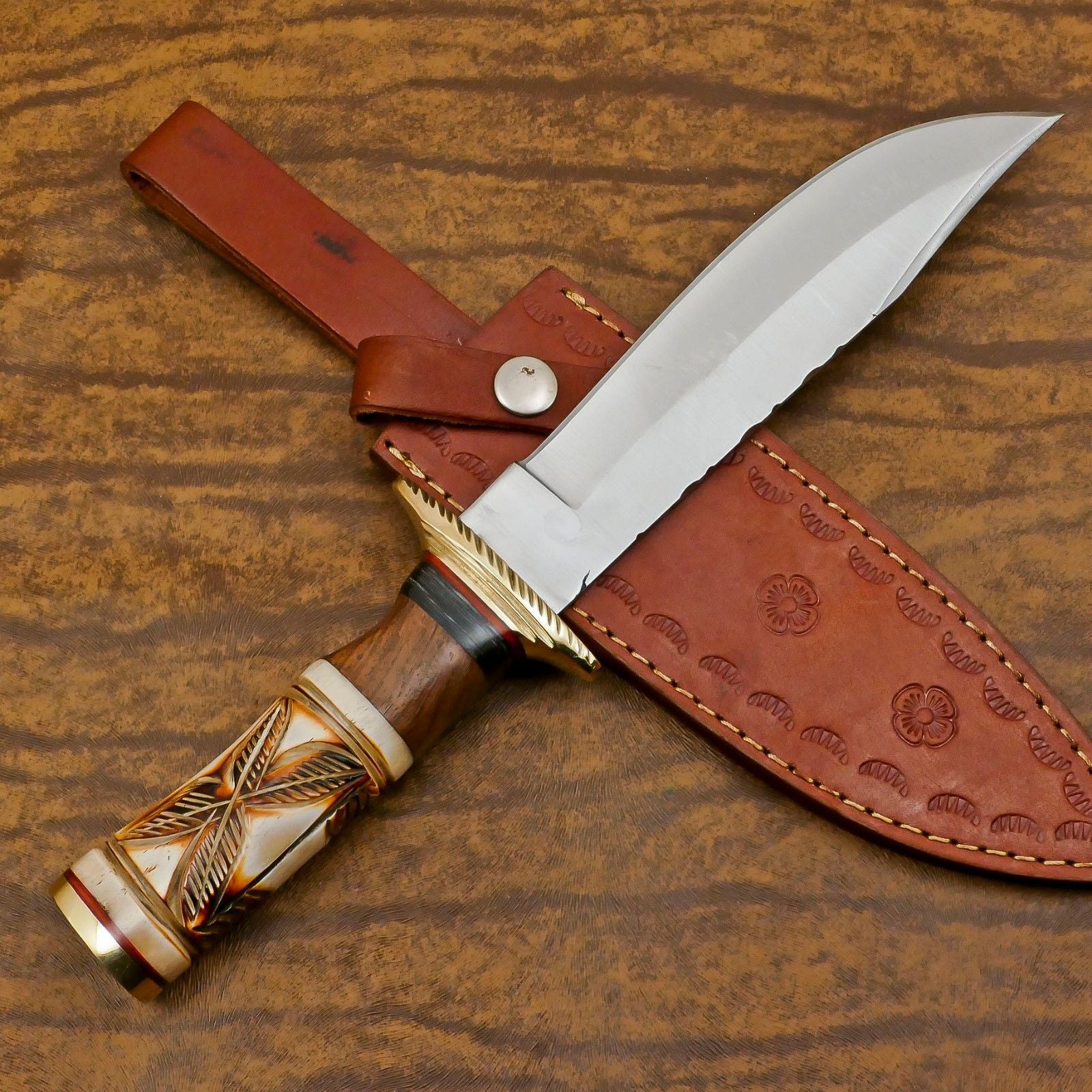 Discover the perfect balance of craftsmanship, strength, and outdoor functionality with this custom handmade D2 steel Bowie hunting and camping knife. Featuring a 12-inch full tang blade forged from premium D2 tool steel, this knife offers exceptional sharpness, edge retention, and durability, making it an ideal companion for hunting, camping, and survival tasks. The fixed blade construction provides maximum strength and stability, while the ergonomic handle ensures a comfortable, secure grip during extended use. A steel guard enhances safety during rigorous cutting, chopping, or skinning activities. Each knife is meticulously handmade, giving it a unique character and artisanal quality that sets it apart from mass-produced alternatives. Whether you are processing game in the field, preparing firewood at your campsite, or simply adding a premium blade to your collection, this Bowie knife combines practicality with elegance. Rugged yet refined, it is suitable for hunters, campers, survivalists, and collectors alike. With its sharp edge, durable construction, and handcrafted artistry, this D2 steel Bowie knife delivers unmatched performance in outdoor adventures while standing out as a striking, one-of-a-kind tool.