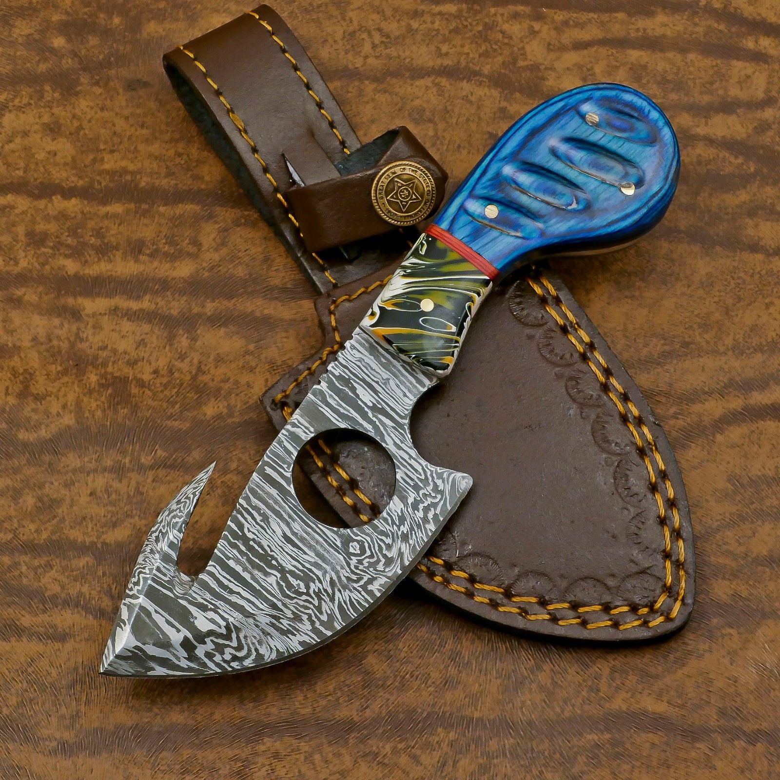Custom Handmade Damascus Gut Hook Skinner Knife for Hunting and Camping