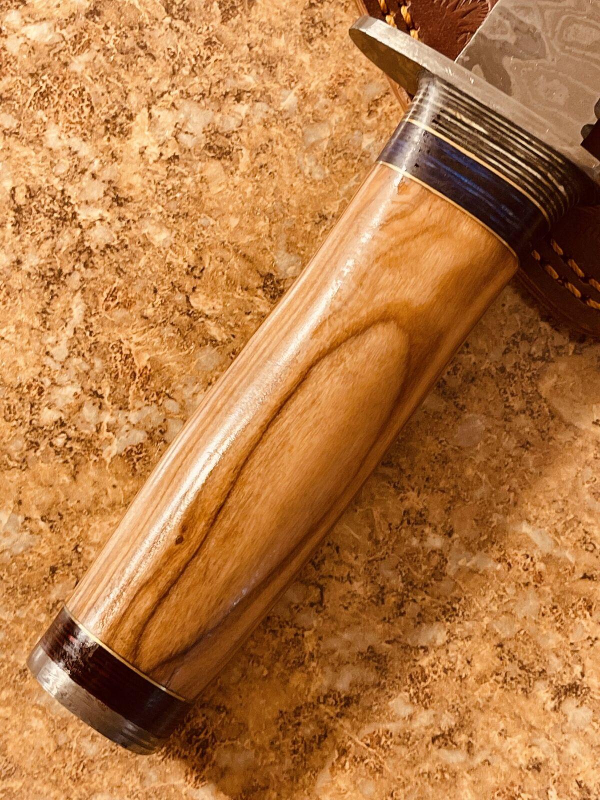 The clever chopper design delivers the perfect balance of hardness, toughness, and flexibility, making it ideal for hunting, butchering, camping, and outdoor survival tasks. This axe knife is more than just a functional tool—it is a handmade piece of craftsmanship that stands out in any collection. A full Damascus steel guard adds extra detail and durability, while the olive wood handle enhances the knife with natural elegance.
