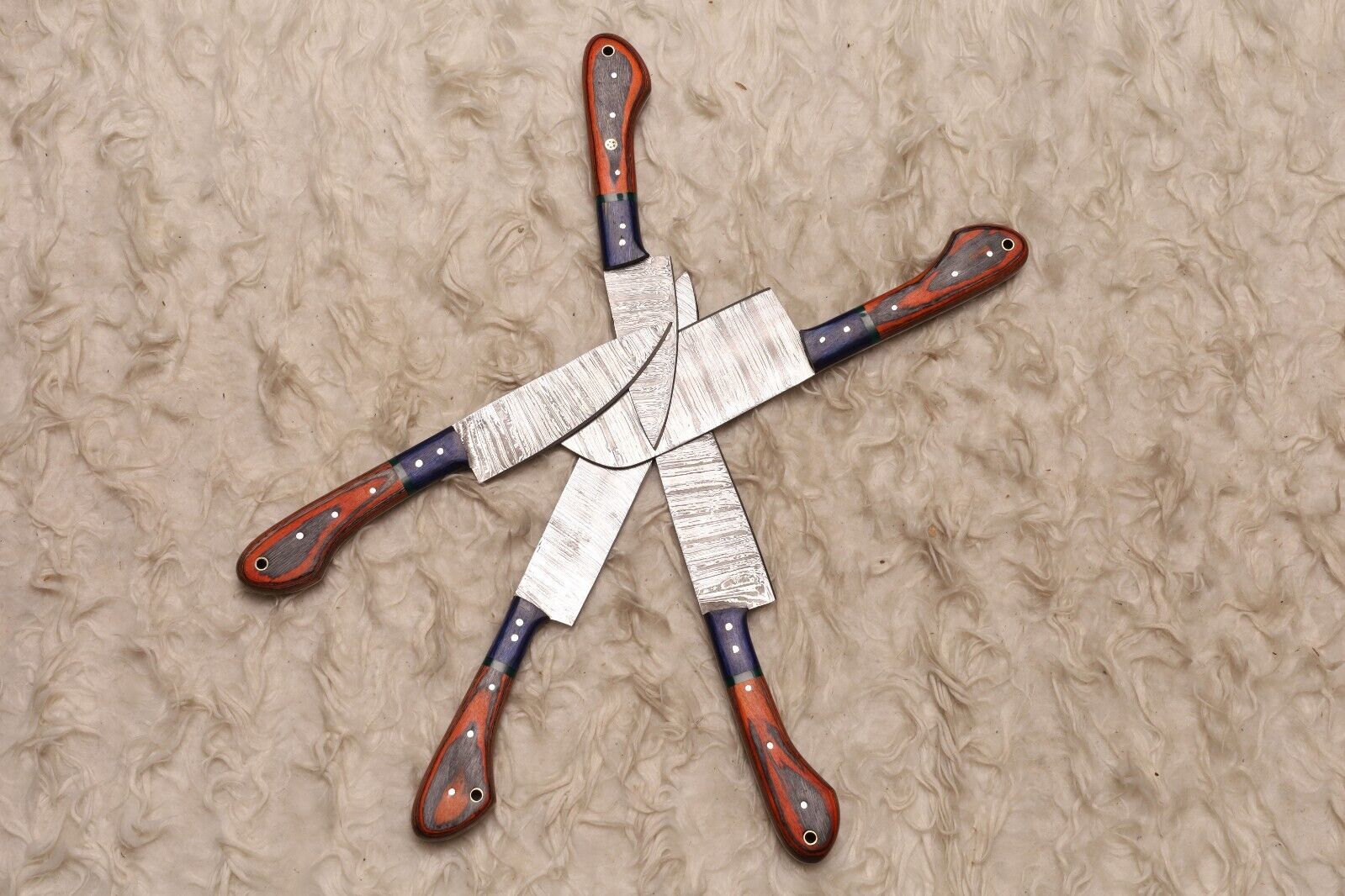 Elevate your cooking experience with this Custom Handmade 5-Piece Chef Knife Set, expertly crafted from genuine Damascus Steel and featuring elegant wood handles for superior grip and durability. Whether you’re a professional chef or a home cook, this set is designed to provide precision, style, and long-lasting performance.