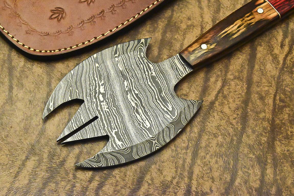 Custom Handmade Damascus Steel Axe | Full Tang Tomahawk Hatchet Knife | Hardwood Handle