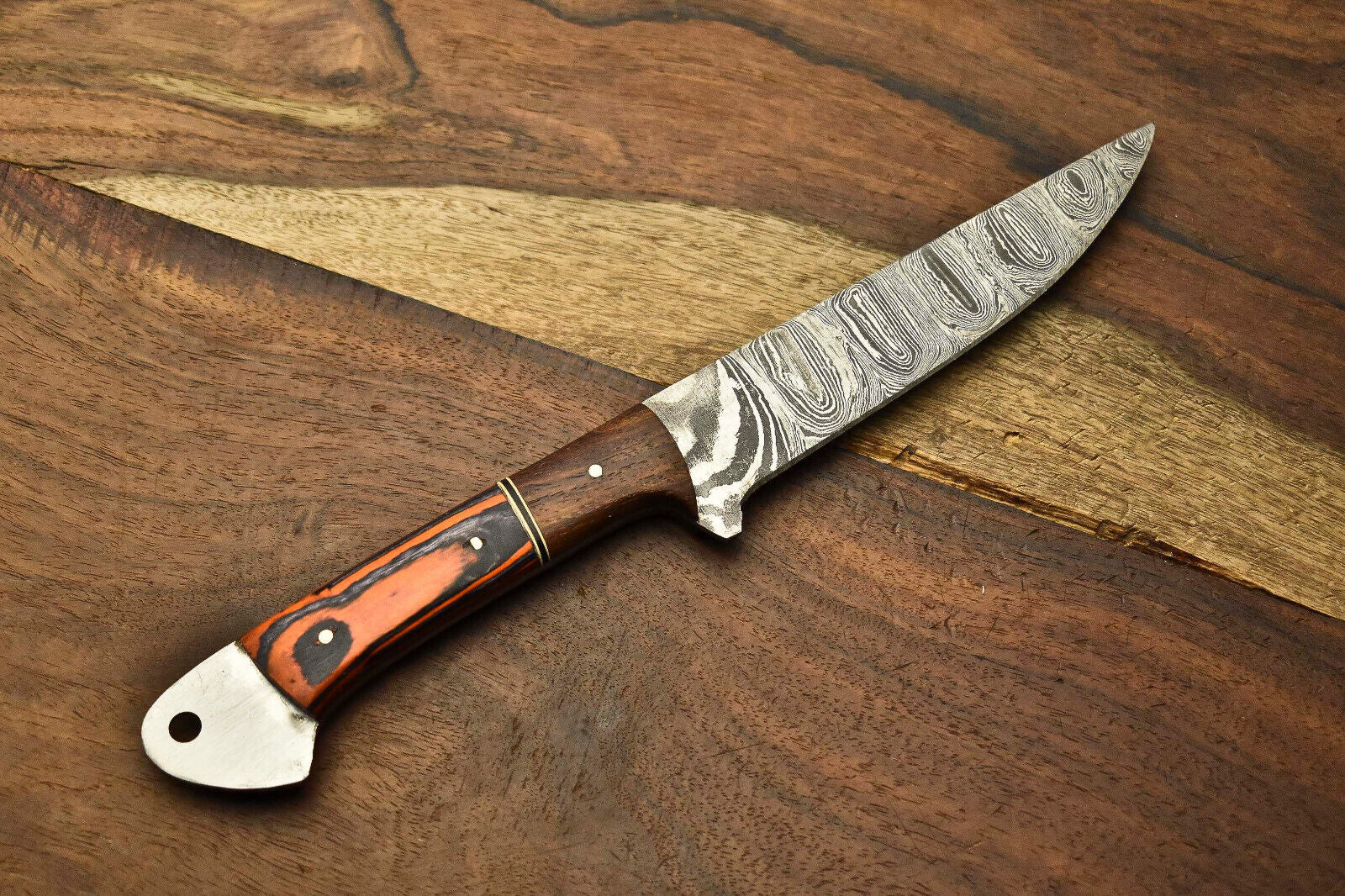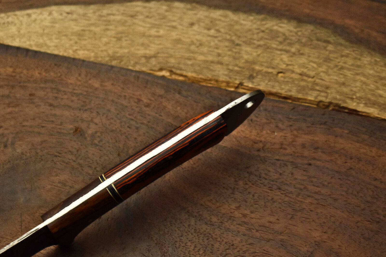 Our Damascus steel is genuine and not simply acid-etched. Made from a blend of 1095HC and 15N20 nickel carbon steel, the blade undergoes a meticulous forging process with 384 layers. This process involves repeated heating, folding, and acid etching, which reveals the striking Damascus pattern while enhancing durability. The result is a blade that is not only visually stunning but also capable of retaining a sharp edge longer than standard steel knives.