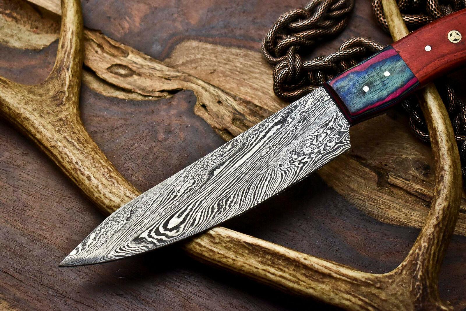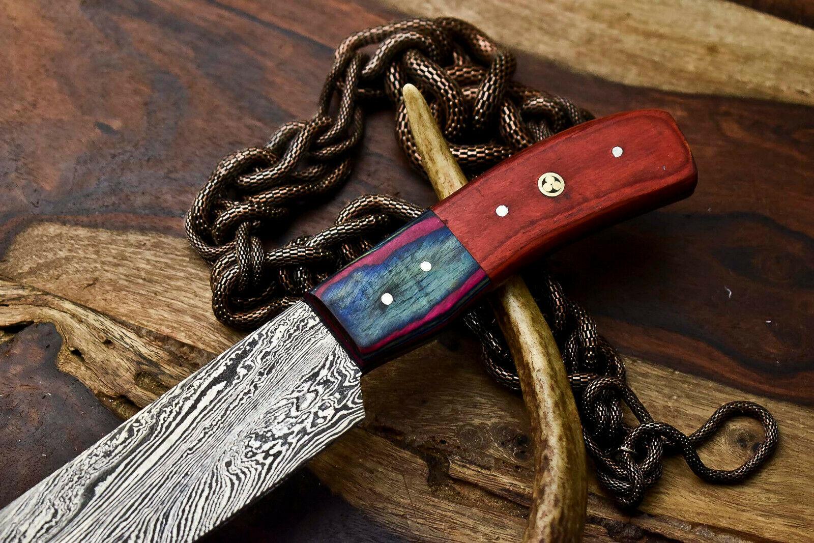 Custom Handmade Damascus Steel Chef & Hunting Knife | Hard Wood Handle, Full Tang