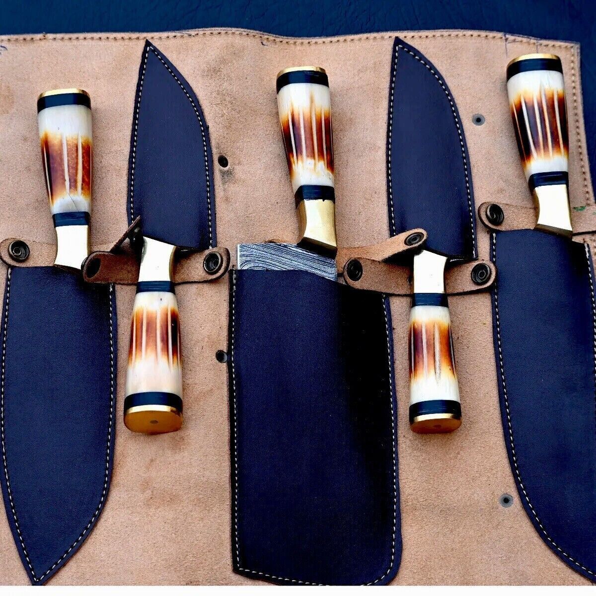 CUSTOM HANDMADE DAMASCUS STEEL CHEF KNIVES KITCHEN KNIFE SET