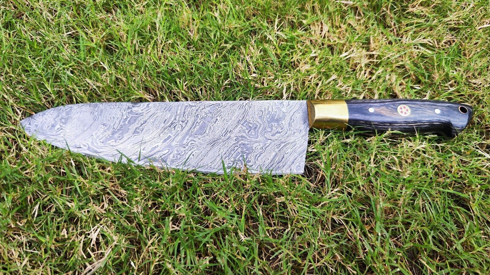 Elevate your kitchen and outdoor experience with this custom handmade Damascus steel kitchen knife, a perfect gift for professional chefs, collectors, and cooking enthusiasts.