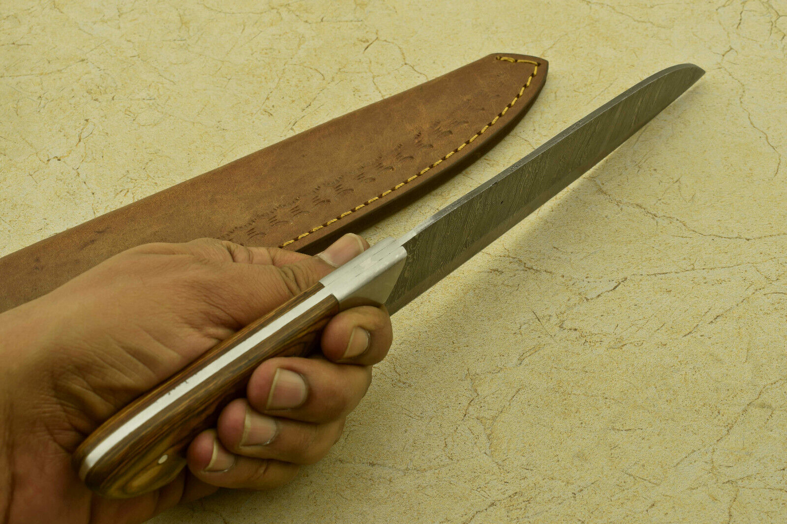 Custom Handmade Forged Damascus Steel Chef Kitchen Knife with Wood Handle – 12" Professional Knife